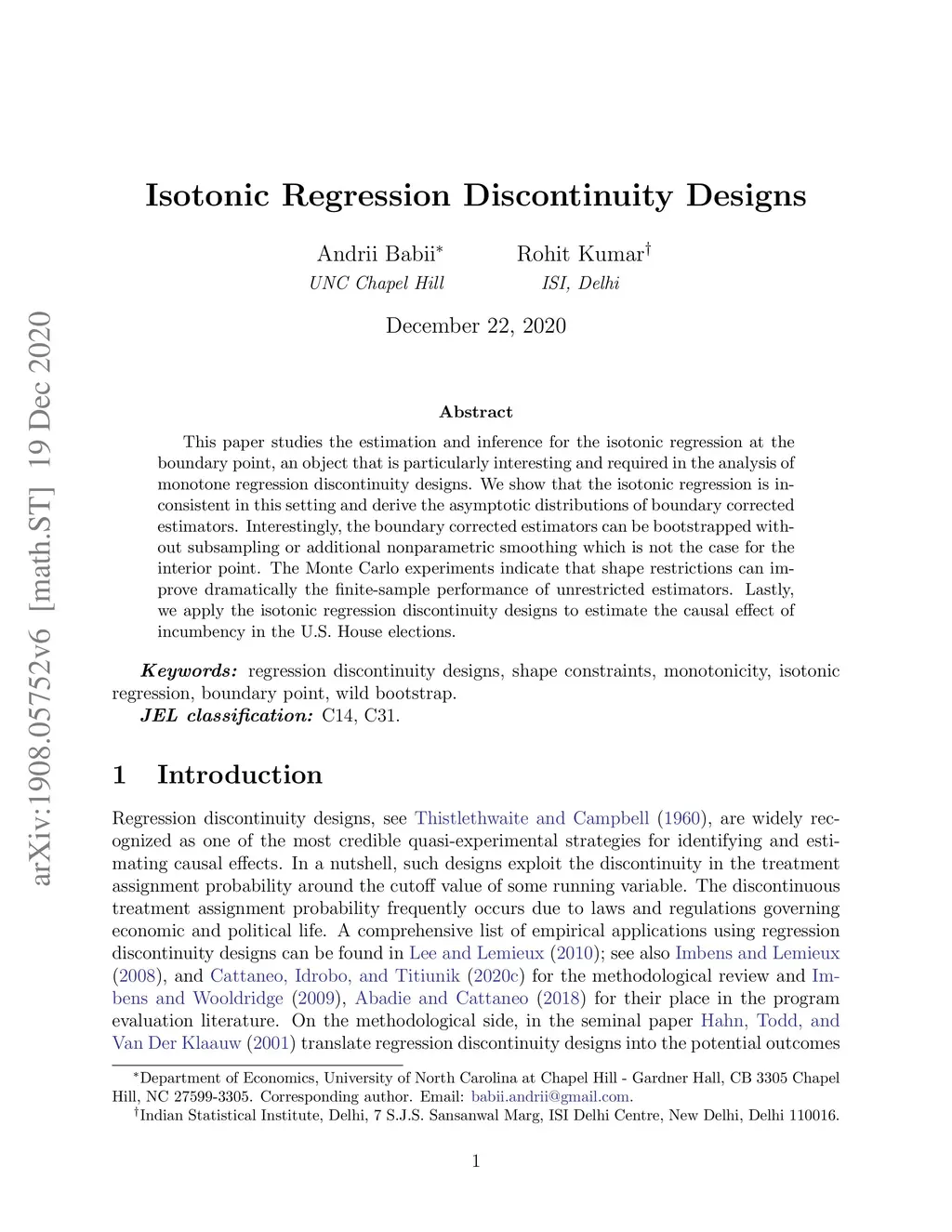 Isotonic regression discontinuity designs