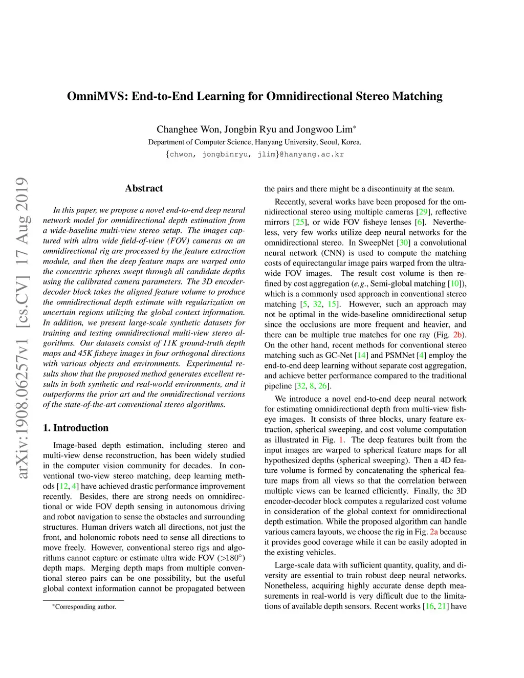 OmniMVS: End-to-End Learning for Omnidirectional Stereo Matching