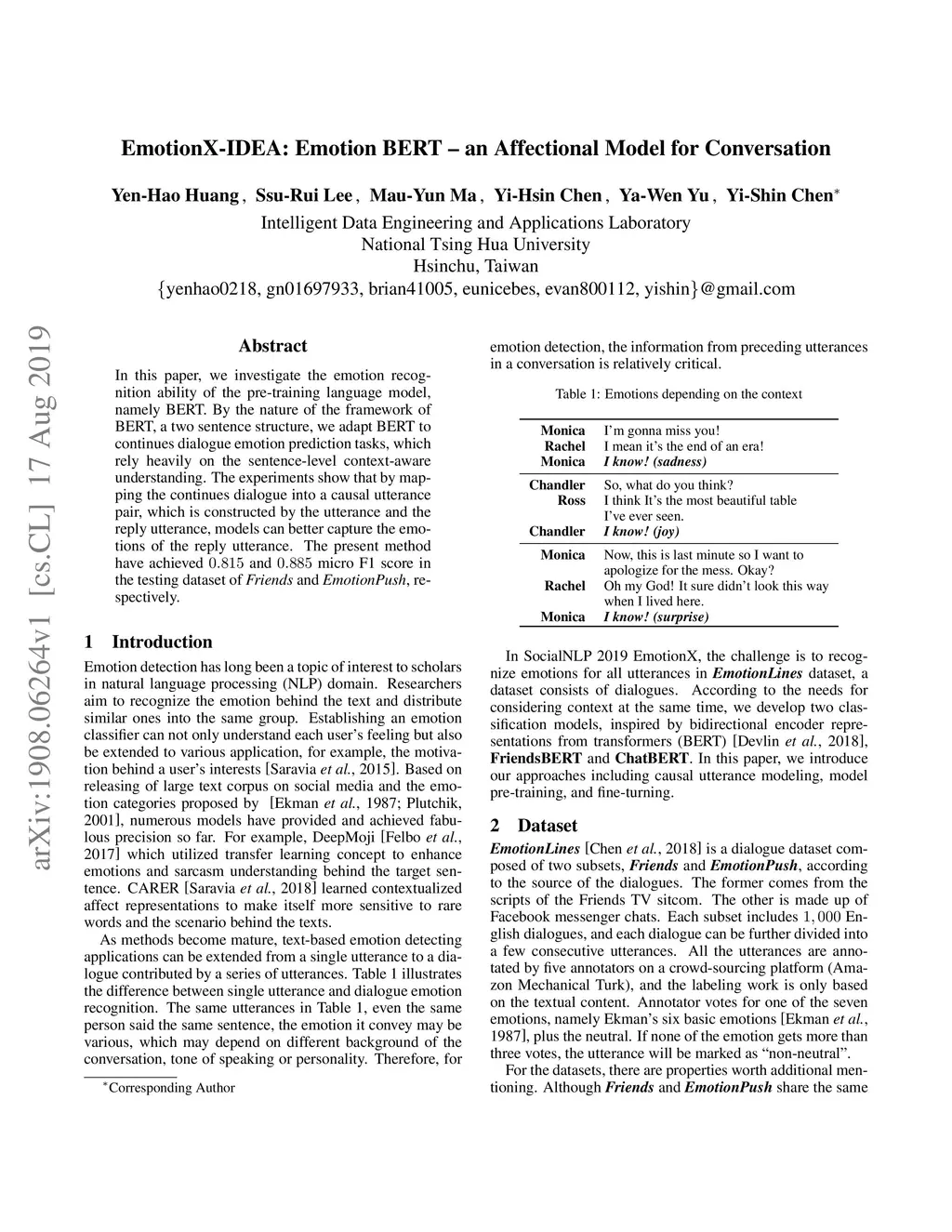 EmotionX-IDEA: Emotion BERT -- an Affectional Model for Conversation
