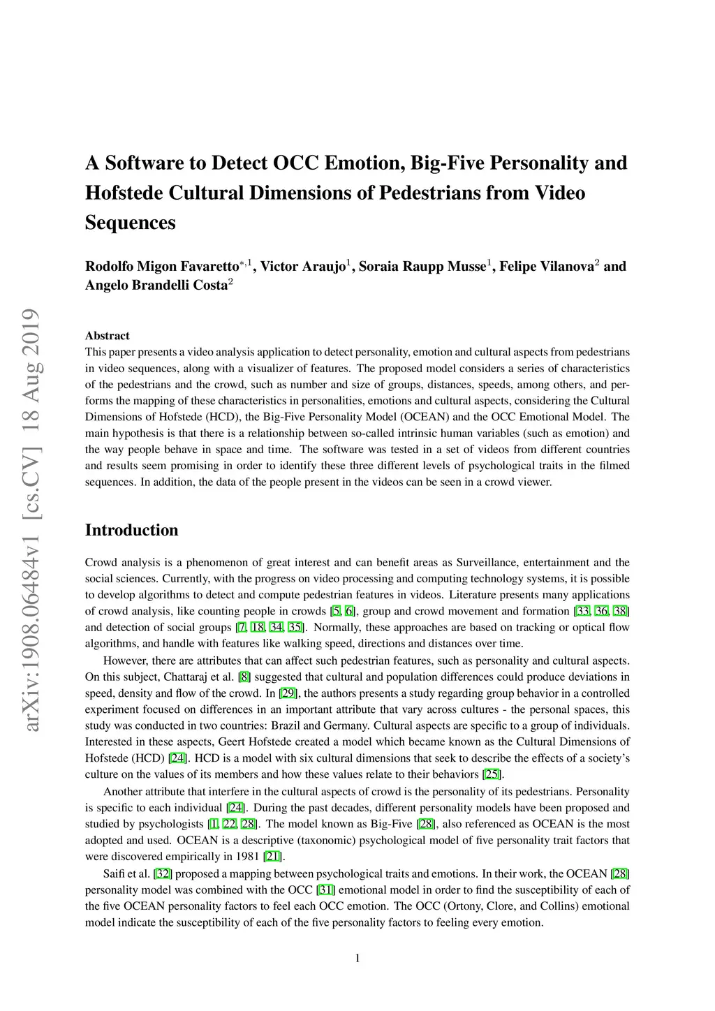 A Software to Detect OCC Emotion, Big-Five Personality and Hofstede