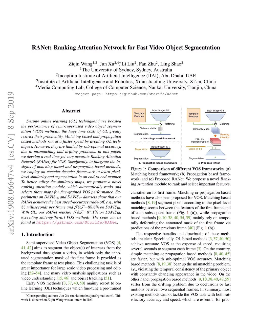 RANet: Ranking Attention Network for Fast Video Object Segmentation