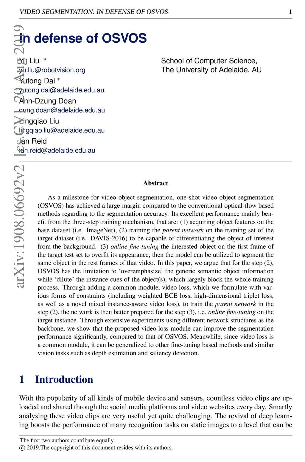 In defense of OSVOS