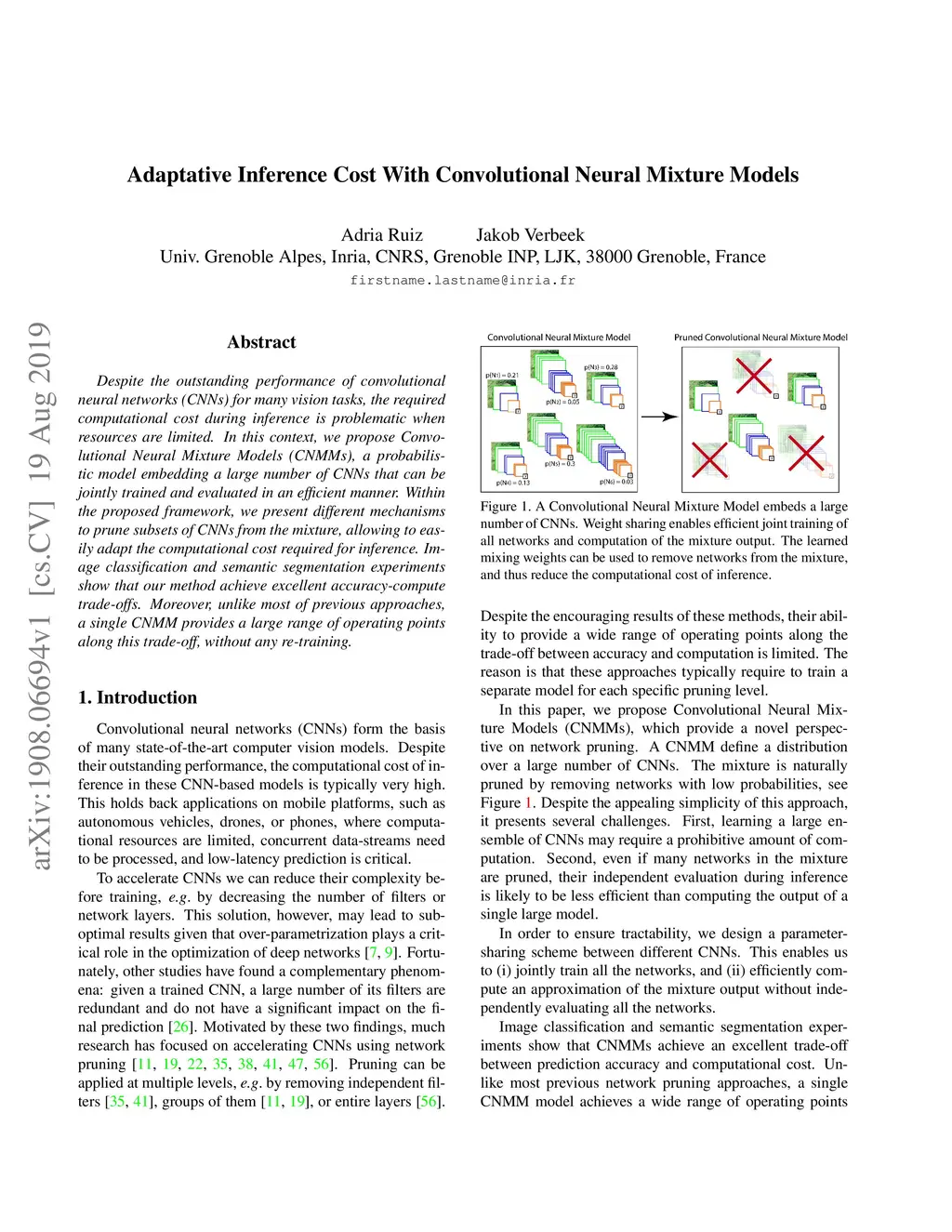 Adaptative Inference Cost With Convolutional Neural Mixture Models