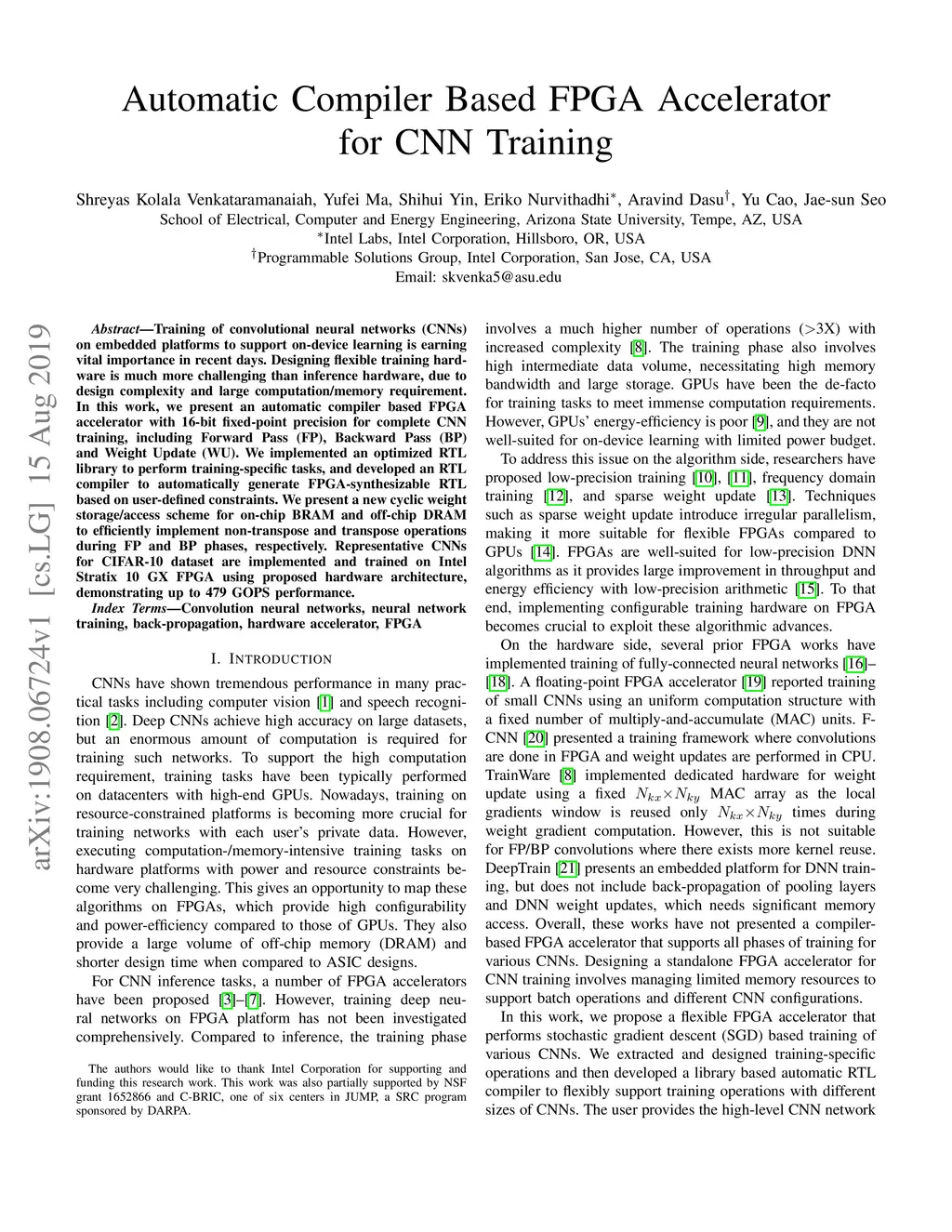 Automatic Compiler Based FPGA Accelerator for CNN Training