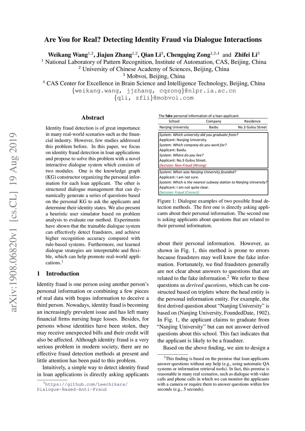 Are You for Real? Detecting Identity Fraud via Dialogue Interactions