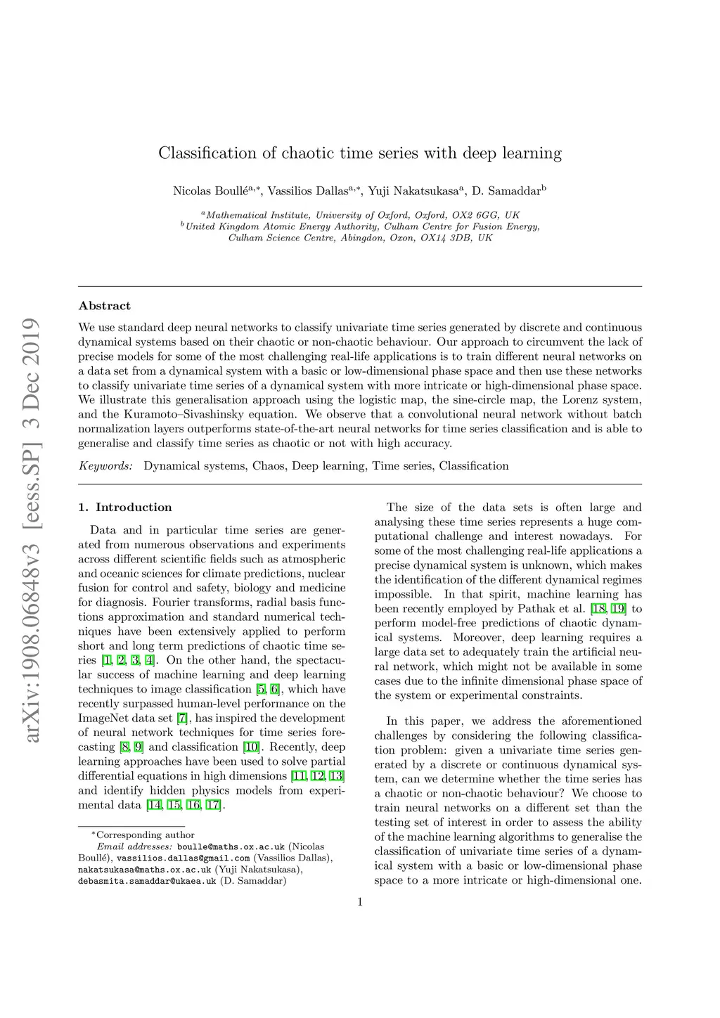 We use standard deep neural networks to classify univariate time series generated by discrete and continuous dynamical systems based on their chaotic or non-chaotic behaviour. Our approach to circumvent the lack of precise models for some of the most challenging real-life applications is to train different neural networks on a data set from a dynamical system with a basic or low-dimensional phase space and then use these networks to classify univariate time series of a dynamical system with more intricate or high-dimensional phase space. We illustrate this generalisation approach using the logistic map, the sine-circle map, the Lorenz system, and the Kuramoto--Sivashinsky equation. We observe that a convolutional neural network without batch normalization layers outperforms state-of-the-art neural networks for time series classification and is able to generalise and classify time series as chaotic or not with high accuracy.
