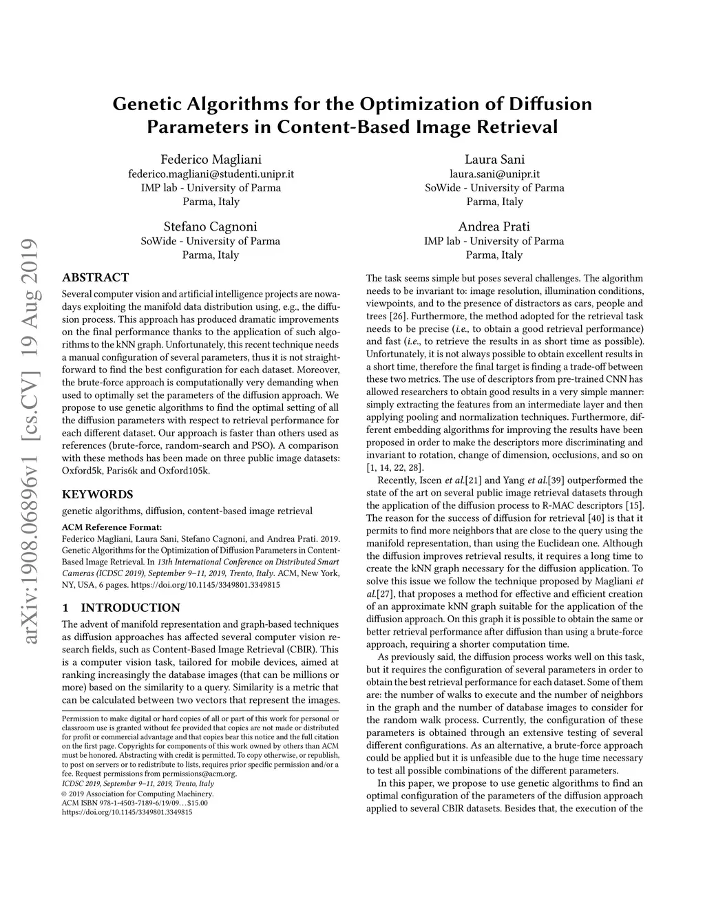 Several computer vision and artificial intelligence projects are nowadays exploiting the manifold data distribution using, e.g., the diffusion process. This approach has produced dramatic improvements on the final performance thanks to the application of such algorithms to the kNN graph. Unfortunately, this recent technique needs a manual configuration of several parameters, thus it is not straightforward to find the best configuration for each dataset. Moreover, the brute-force approach is computationally very demanding when used to optimally set the parameters of the diffusion approach. We propose to use genetic algorithms to find the optimal setting of all the diffusion parameters with respect to retrieval performance for each different dataset. Our approach is faster than others used as references (brute-force, random-search and PSO). A comparison with these methods has been made on three public image datasets: Oxford5k, Paris6k and Oxford105k.