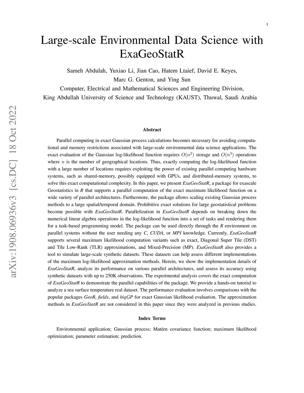 Large-scale Environmental Data Science with ExaGeoStatR