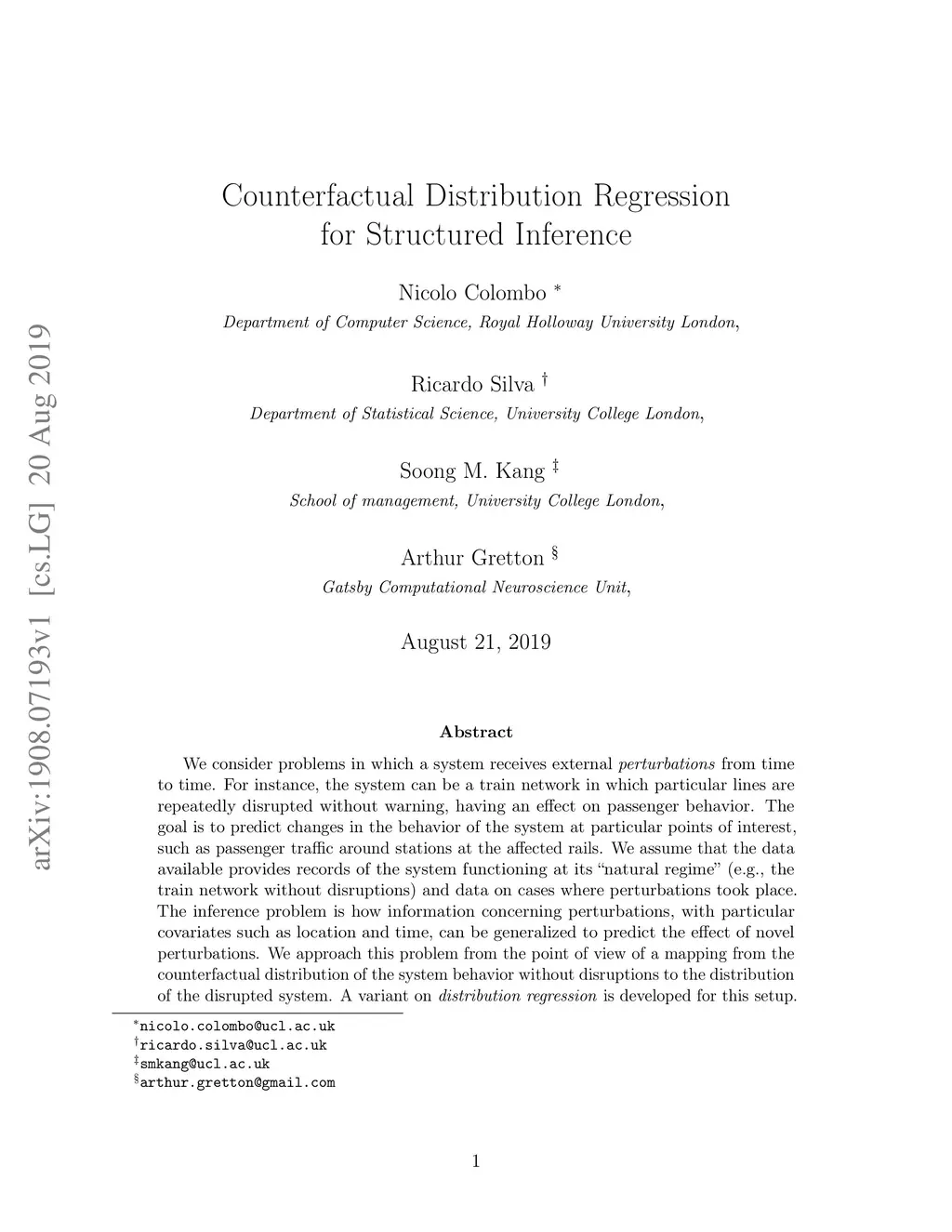 We consider problems in which a system receives external \emph{perturbations} from time to time. For instance, the system can be a train network in which particular lines are repeatedly disrupted without warning, having an effect on passenger behavior. The goal is to predict changes in the behavior of the system at particular points of interest, such as passenger traffic around stations at the affected rails. We assume that the data available provides records of the system functioning at its "natural regime" (e.g., the train network without disruptions) and data on cases where perturbations took place. The inference problem is how information concerning perturbations, with particular covariates such as location and time, can be generalized to predict the effect of novel perturbations. We approach this problem from the point of view of a mapping from the counterfactual distribution of the system behavior without disruptions to the distribution of the disrupted system. A variant on \emph{distribution regression} is developed for this setup.