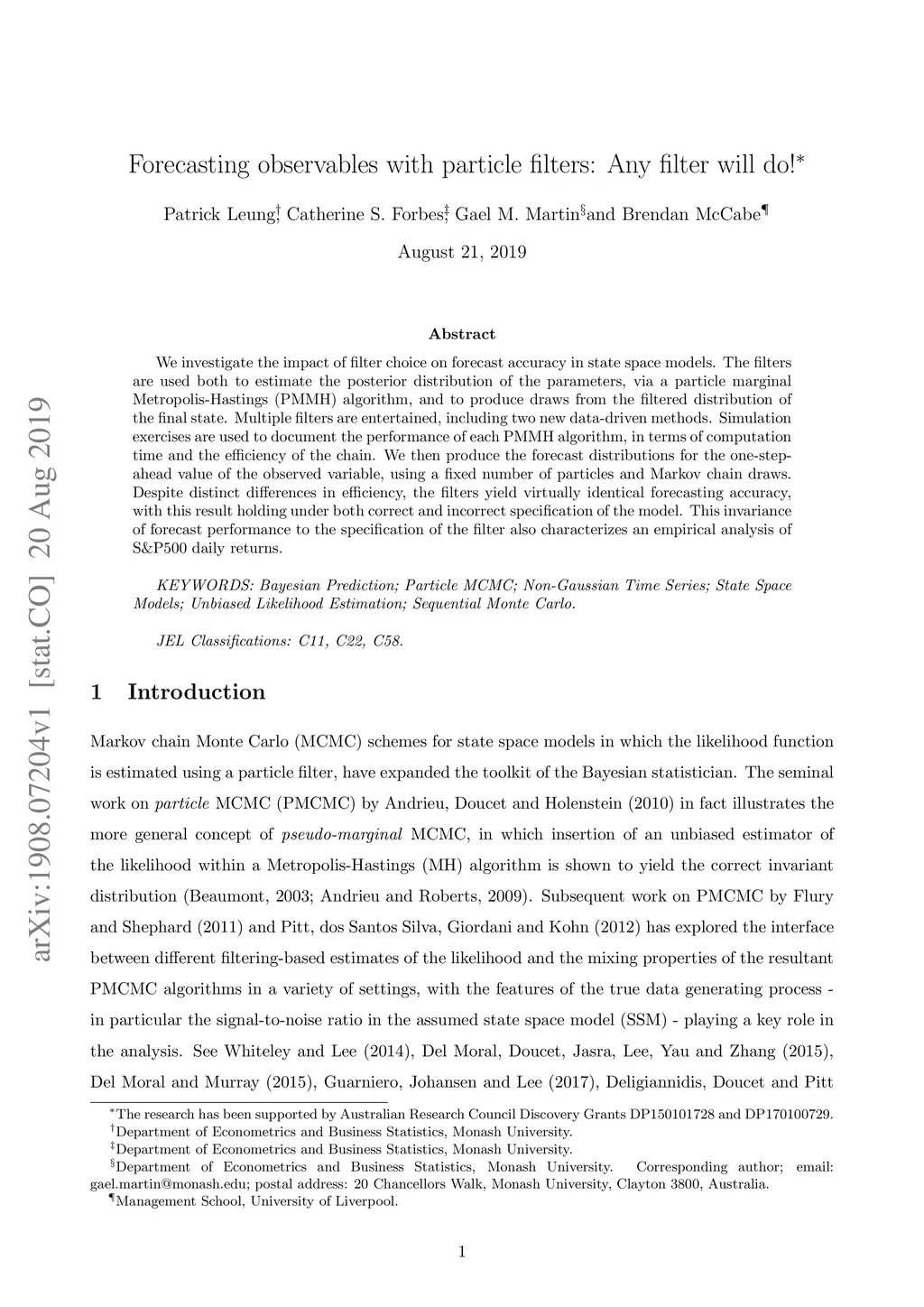 We investigate the impact of filter choice on forecast accuracy in state space models. The filters are used both to estimate the posterior distribution of the parameters, via a particle marginal Metropolis-Hastings (PMMH) algorithm, and to produce draws from the filtered distribution of the final state. Multiple filters are entertained, including two new data-driven methods. Simulation exercises are used to document the performance of each PMMH algorithm, in terms of computation time and the efficiency of the chain. We then produce the forecast distributions for the one-step-ahead value of the observed variable, using a fixed number of particles and Markov chain draws. Despite distinct differences in efficiency, the filters yield virtually identical forecasting accuracy, with this result holding under both correct and incorrect specification of the model. This invariance of forecast performance to the specification of the filter also characterizes an empirical analysis of S&P500 daily returns.