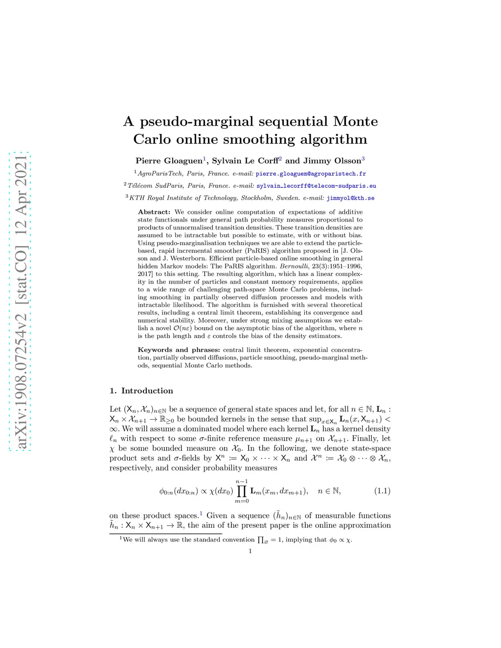 We consider online computation of expectations of additive state functionals under general path probability measures proportional to products of unnormalised transition densities. These transition densities are assumed to be intractable but possible to estimate, with or without bias. Using pseudo-marginalisation techniques we are able to extend the particle-based, rapid incremental smoother (PaRIS) algorithm proposed in [J.Olsson and J.Westerborn. Efficient particle-based online smoothing in general hidden Markov models: The PaRIS algorithm. Bernoulli, 23(3):1951--1996, 2017] to this setting. The resulting algorithm, which has a linear complexity in the number of particles and constant memory requirements, applies to a wide range of challenging path-space Monte Carlo problems, including smoothing in partially observed diffusion processes and models with intractable likelihood. The algorithm is furnished with several theoretical results, including a central limit theorem, establishing its convergence and numerical stability. Moreover, under strong mixing assumptions we establish a novel bound on the asymptotic bias of the algorithm, where is the path length and controls the bias of the density estimators.