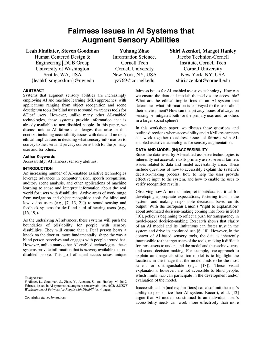 ACM SIGACCESS Accessibility and Computing (SIGACCESS), 2019