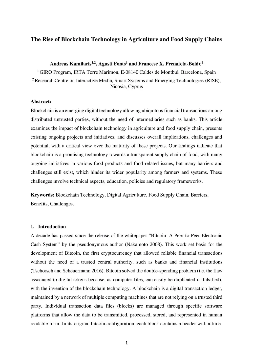 The Rise of Blockchain Technology in Agriculture and Food Supply Chains