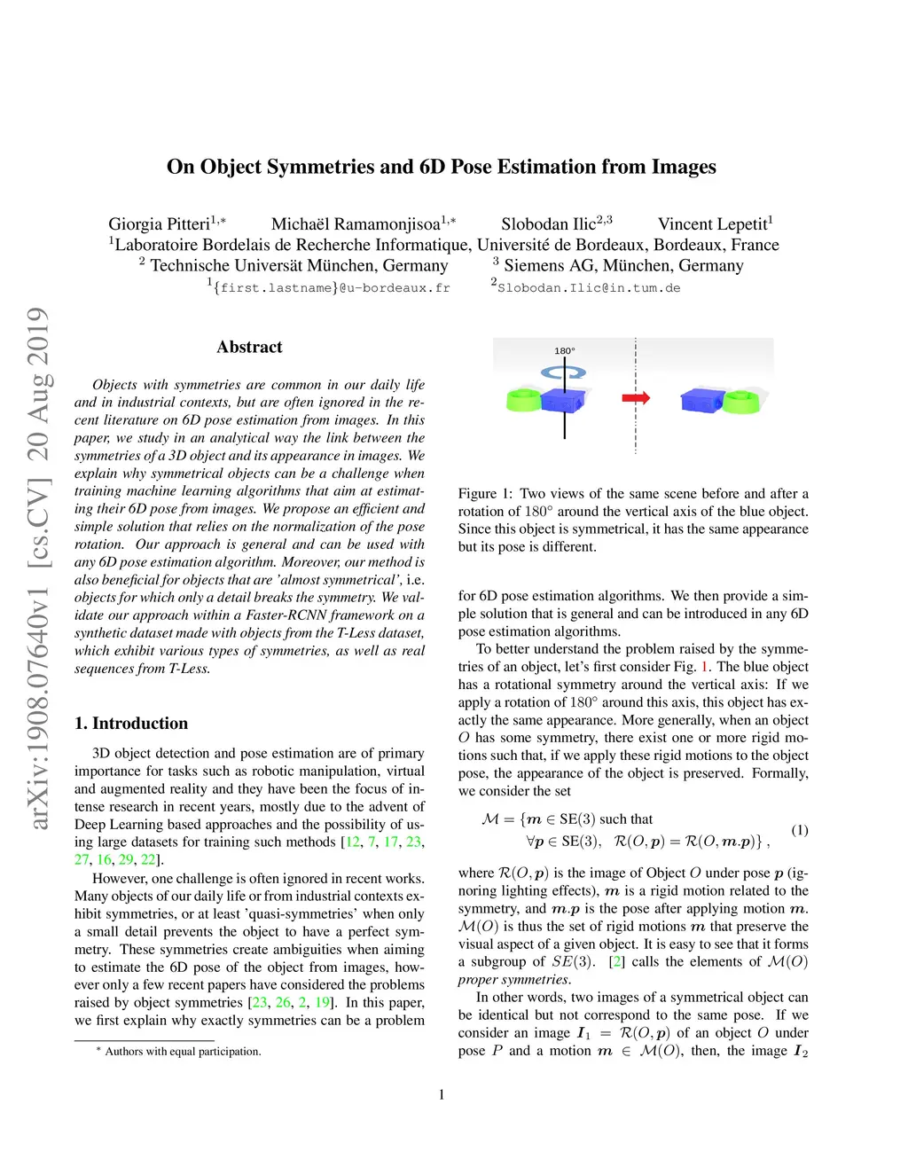 Objects with symmetries are common in our daily life and in industrial contexts, but are often ignored in the recent literature on 6D pose estimation from images. In this paper, we study in an analytical way the link between the symmetries of a 3D object and its appearance in images. We explain why symmetrical objects can be a challenge when training machine learning algorithms that aim at estimating their 6D pose from images. We propose an efficient and simple solution that relies on the normalization of the pose rotation. Our approach is general and can be used with any 6D pose estimation algorithm. Moreover, our method is also beneficial for objects that are álmost symmetrical', i.e. objects for which only a detail breaks the symmetry. We validate our approach within a Faster-RCNN framework on a synthetic dataset made with objects from the T-Less dataset, which exhibit various types of symmetries, as well as real sequences from T-Less.