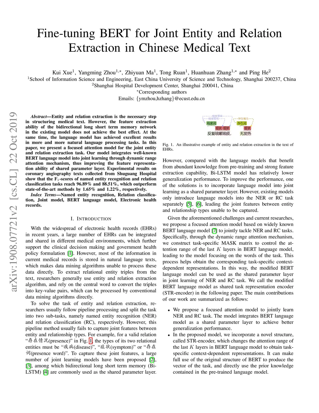 Fine-tuning BERT for Joint Entity and Relation Extraction in Chinese