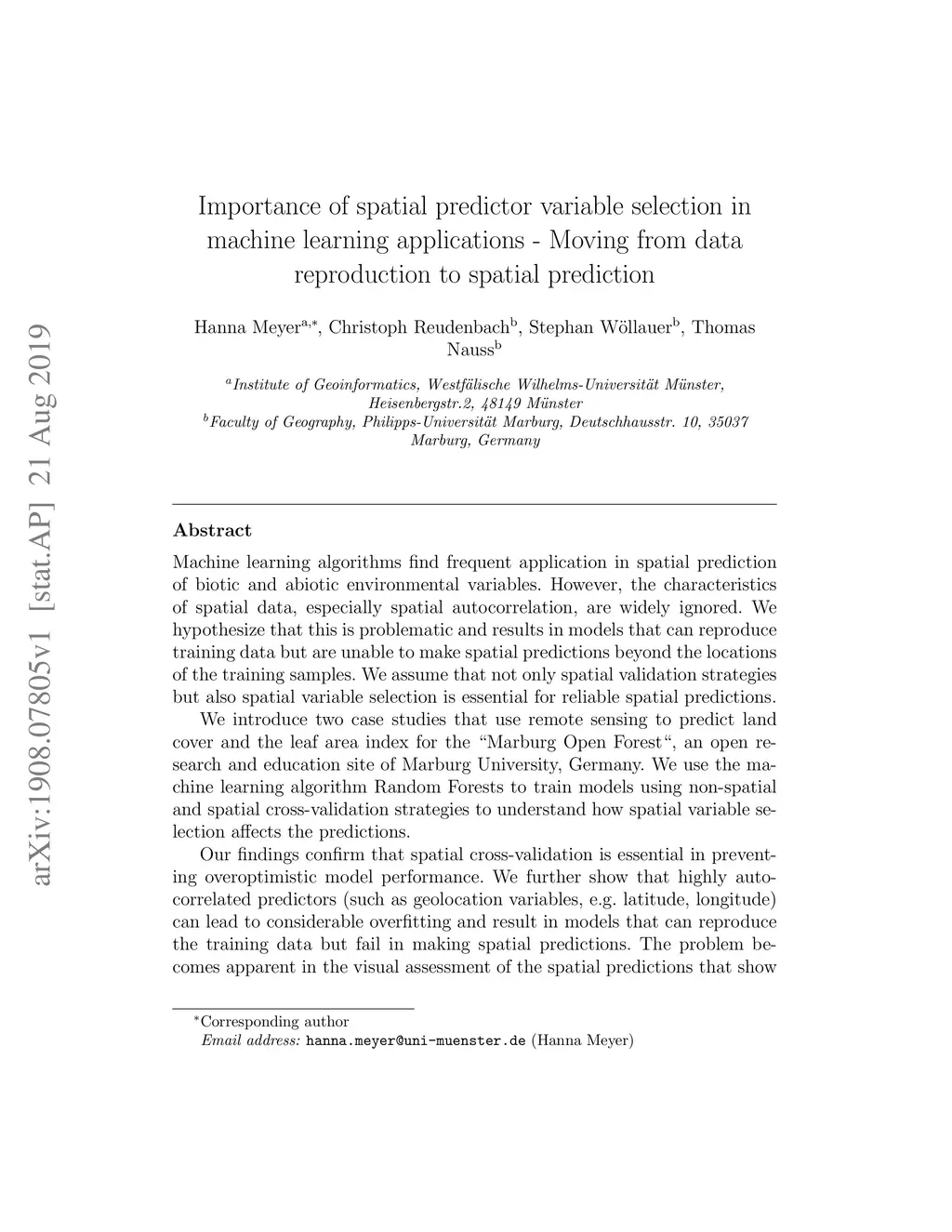 Importance of spatial predictor variable selection in machine learning