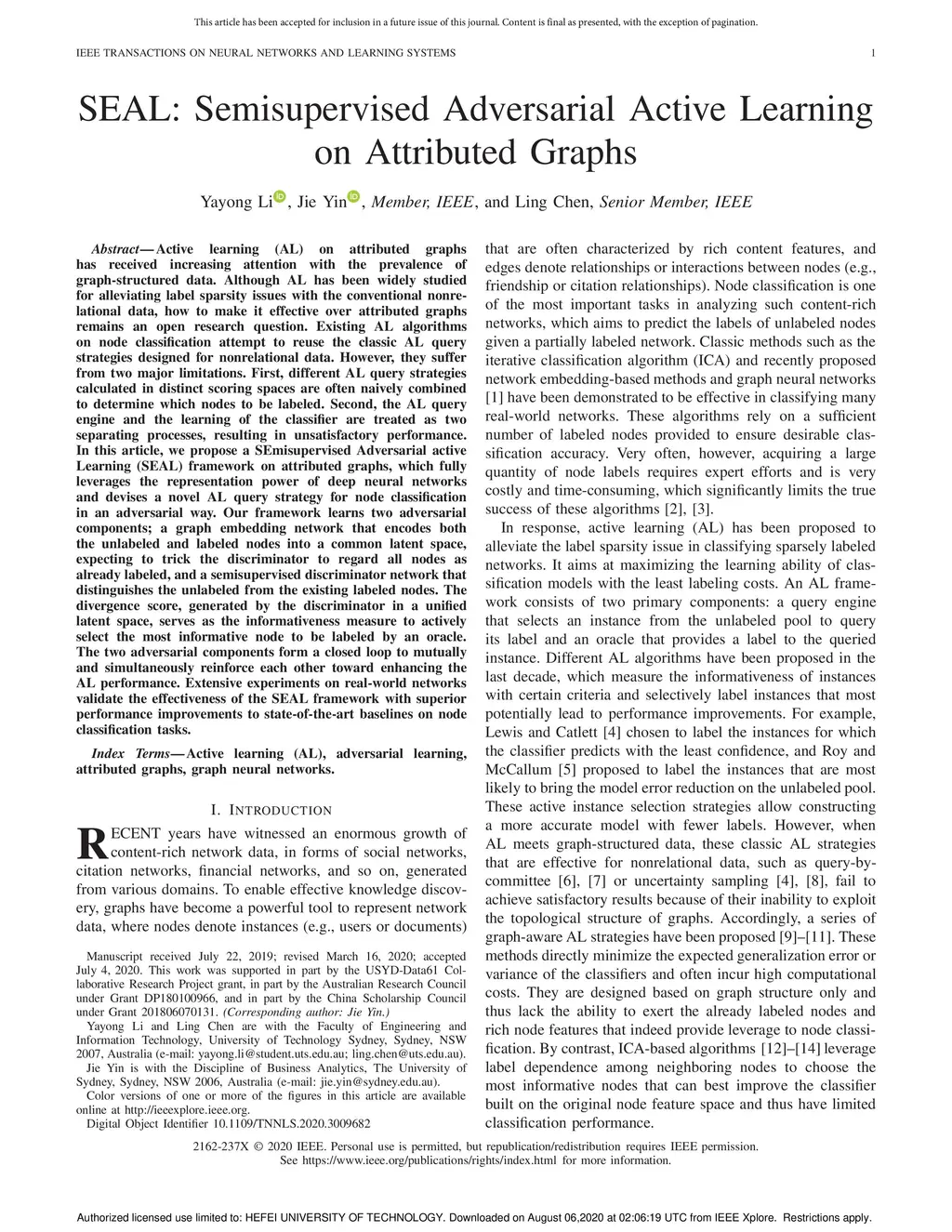SEAL: Semi-supervised Adversarial Active Learning on Attributed Graphs