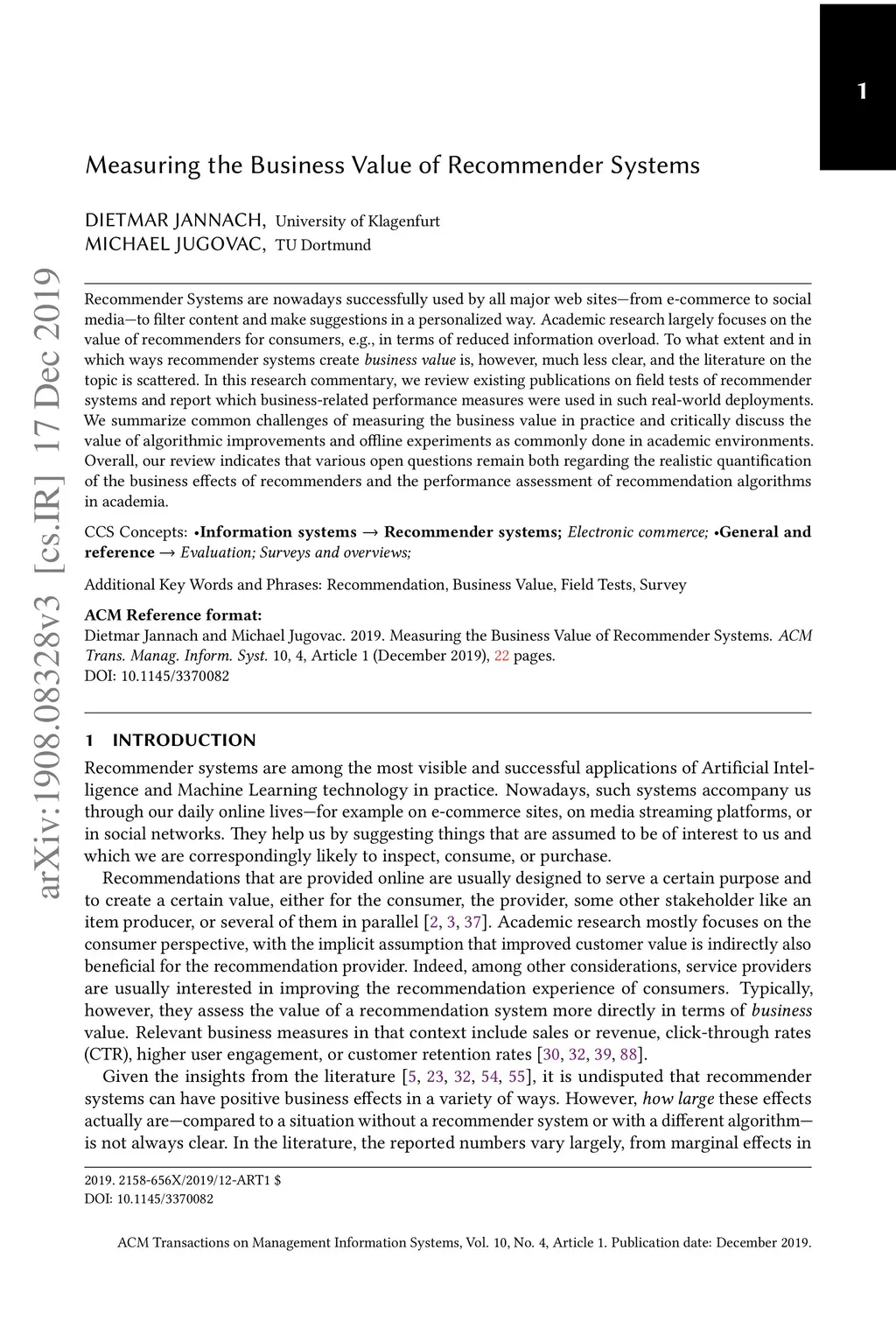 Measuring the Business Value of Recommender Systems