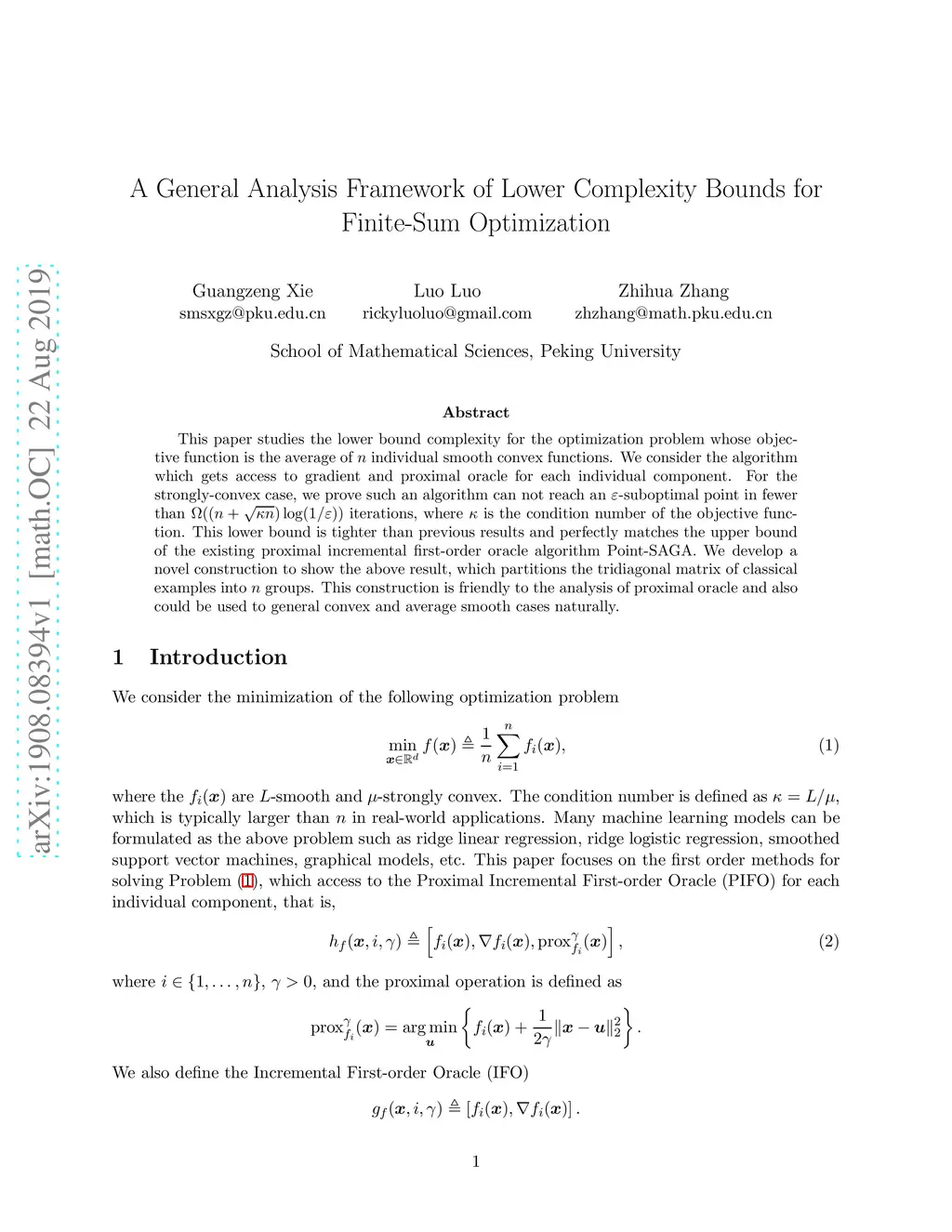 This paper studies the lower bound complexity for the optimization problem whose objective function is the average of individual smooth convex functions. We consider the algorithm which gets access to gradient and proximal oracle for each individual component. For the strongly-convex case, we prove such an algorithm can not reach an -suboptimal point in fewer than iterations, where is the condition number of the objective function. This lower bound is tighter than previous results and perfectly matches the upper bound of the existing proximal incremental first-order oracle algorithm Point-SAGA. We develop a novel construction to show the above result, which partitions the tridiagonal matrix of classical examples into groups. This construction is friendly to the analysis of proximal oracle and also could be used to general convex and average smooth cases naturally.