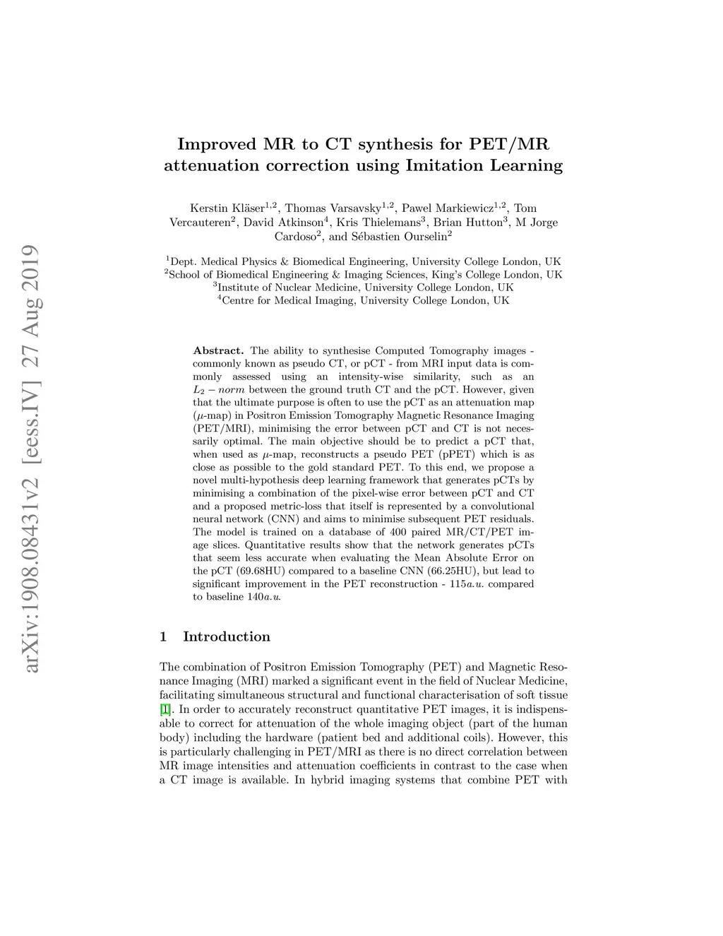 Improved MR to CT synthesis for PET/MR attenuation correction using