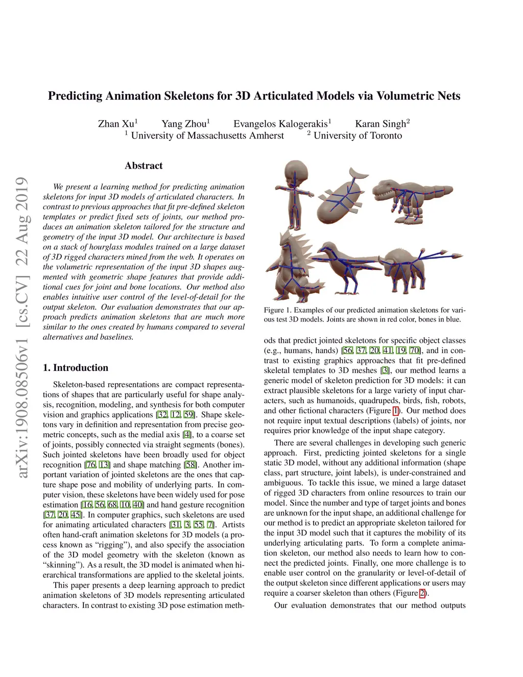 Predicting Animation Skeletons for 3D Articulated Models via Volumetric