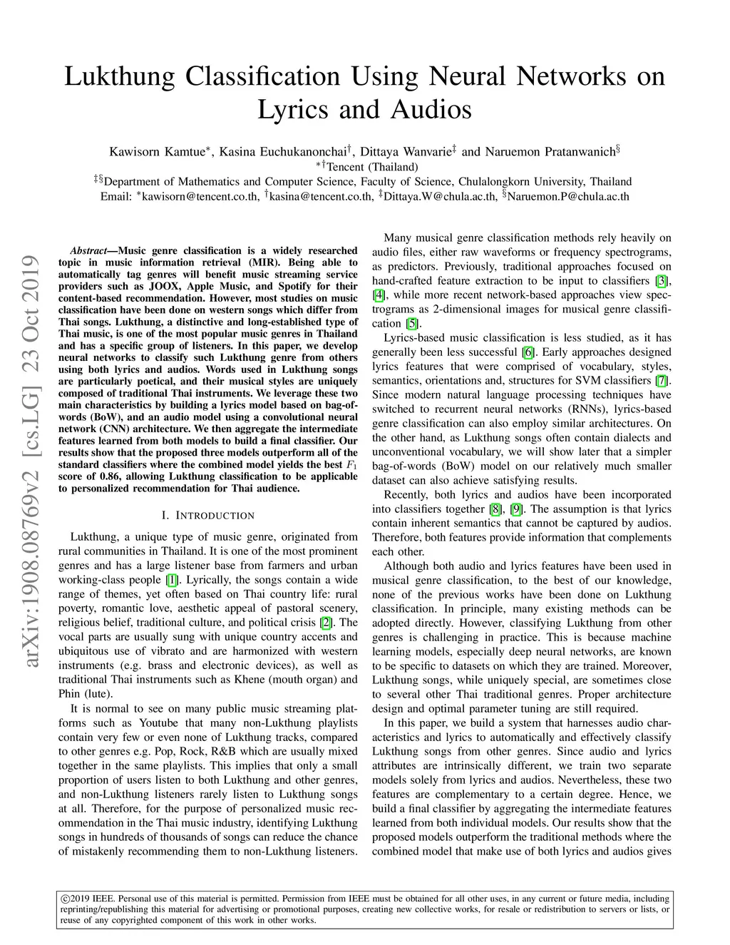 Lukthung Classification Using Neural Networks on Lyrics and Audios