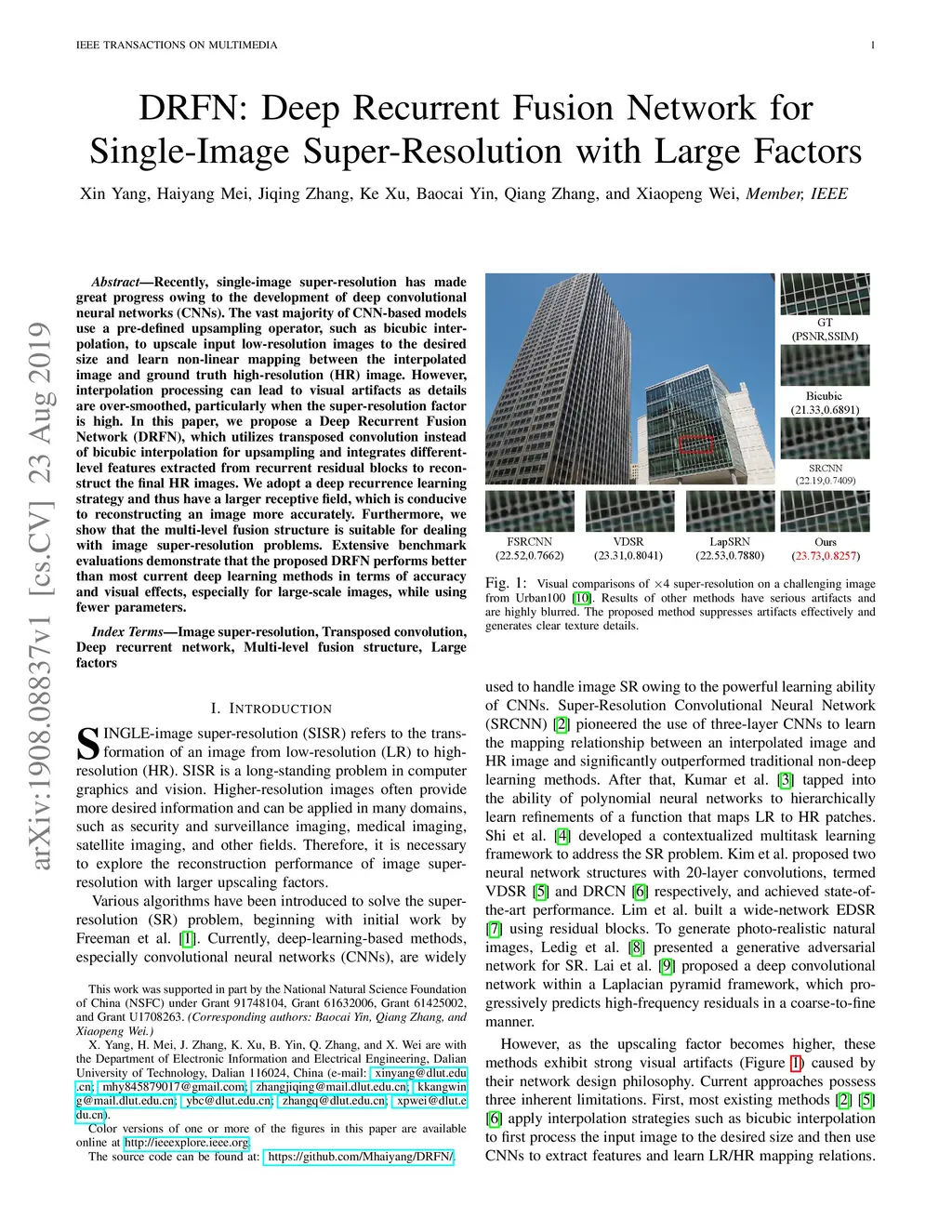 DRFN: Deep Recurrent Fusion Network for Single-Image Super-Resolution