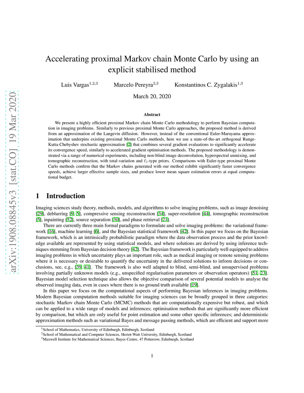 We present a highly efficient proximal Markov chain Monte Carlo methodology to perform Bayesian computation in imaging problems. Similarly to previous proximal Monte Carlo approaches, the proposed method is derived from an approximation of the {Langevin diffusion}. However, instead of the conventional Euler-Maruyama approximation that underpins existing proximal Monte Carlo methods, here we use a state-of-the-art orthogonal Runge-Kutta-Chebyshev stochastic approximation {\cite{abdulleSKROCK}} that combines several gradient evaluations to significantly accelerate its convergence speed, similarly to accelerated gradient optimisation methods. The proposed methodology is demonstrated via a range of numerical experiments, including non-blind image deconvolution, hyperspectral unmixing, and tomographic reconstruction, with total-variation and -type priors. Comparisons with Euler-type proximal Monte Carlo methods confirm that the Markov chains generated with our method exhibit significantly faster convergence speeds, achieve larger effective sample sizes, and produce lower mean square estimation errors at equal computational budget.