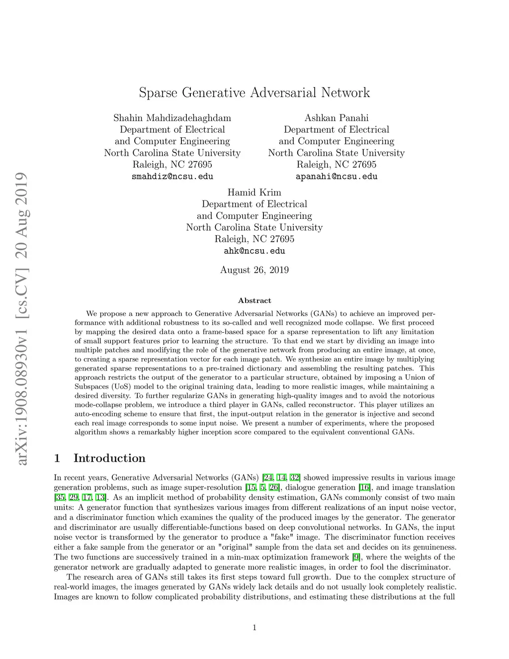 Sparse Generative Adversarial Network