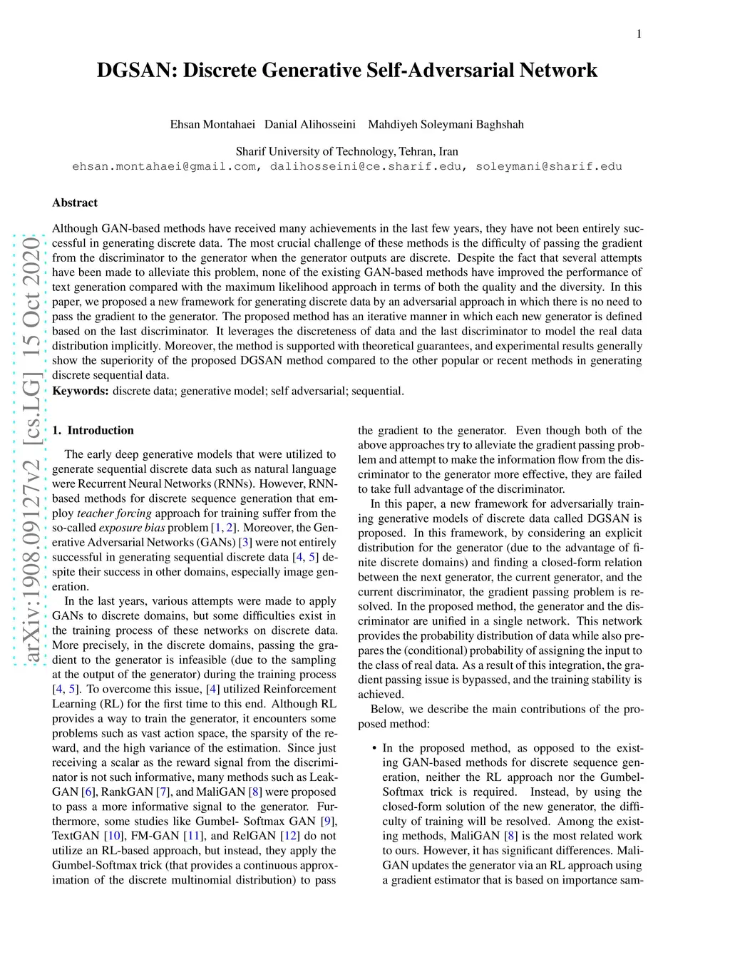 DGSAN: Discrete Generative Self-Adversarial Network