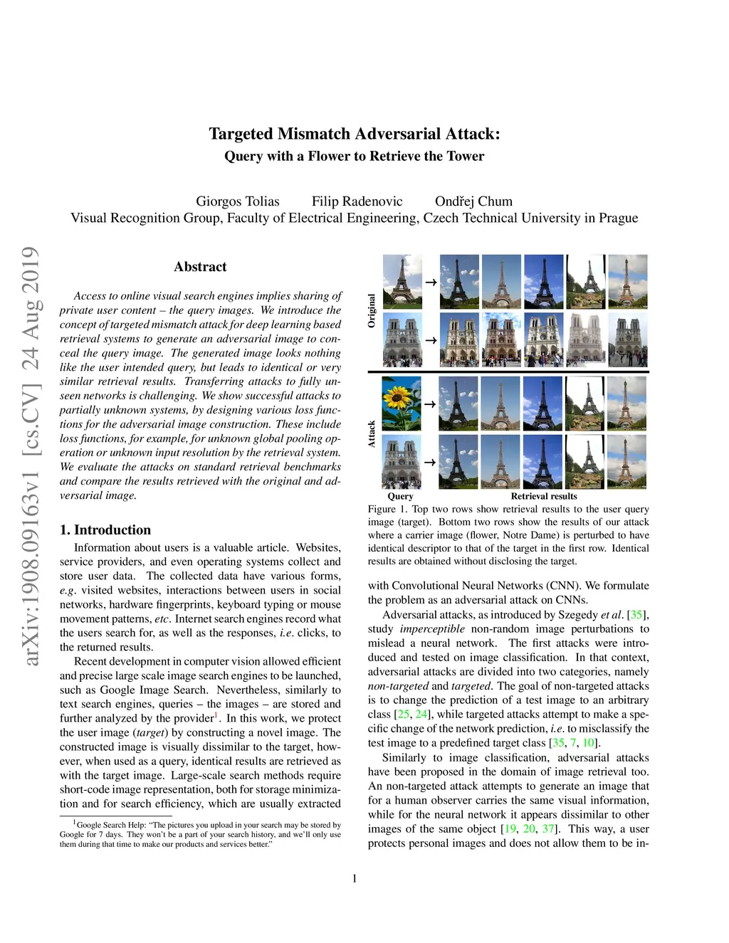 Targeted Mismatch Adversarial Attack: Query with a Flower to Retrieve