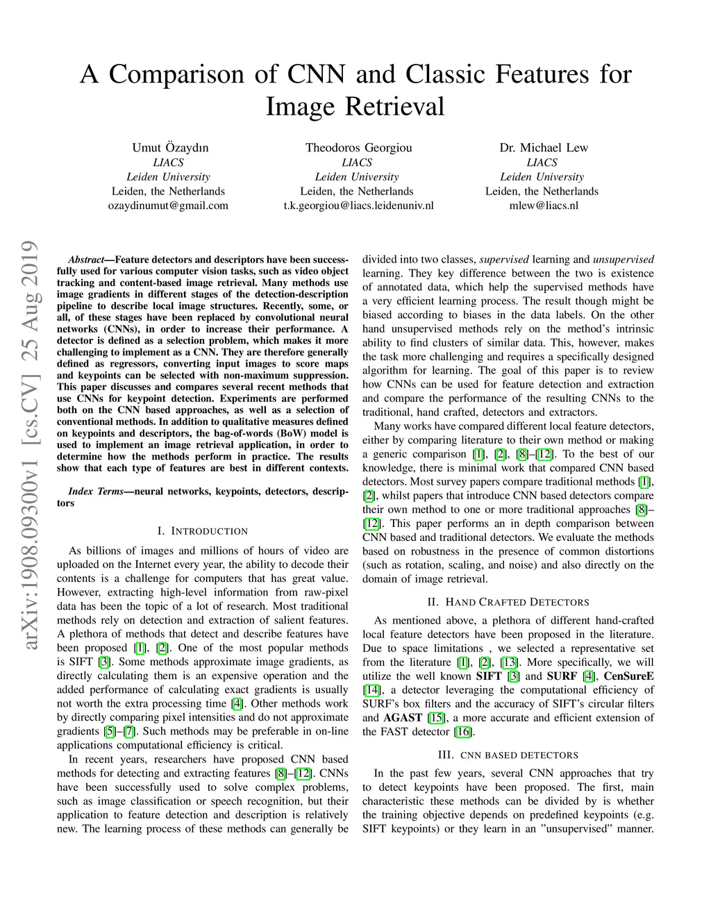 Feature detectors and descriptors have been successfully used for various computer vision tasks, such as video object tracking and content-based image retrieval. Many methods use image gradients in different stages of the detection-description pipeline to describe local image structures. Recently, some, or all, of these stages have been replaced by convolutional neural networks (CNNs), in order to increase their performance. A detector is defined as a selection problem, which makes it more challenging to implement as a CNN. They are therefore generally defined as regressors, converting input images to score maps and keypoints can be selected with non-maximum suppression. This paper discusses and compares several recent methods that use CNNs for keypoint detection. Experiments are performed both on the CNN based approaches, as well as a selection of conventional methods. In addition to qualitative measures defined on keypoints and descriptors, the bag-of-words (BoW) model is used to implement an image retrieval application, in order to determine how the methods perform in practice. The results show that each type of features are best in different contexts.