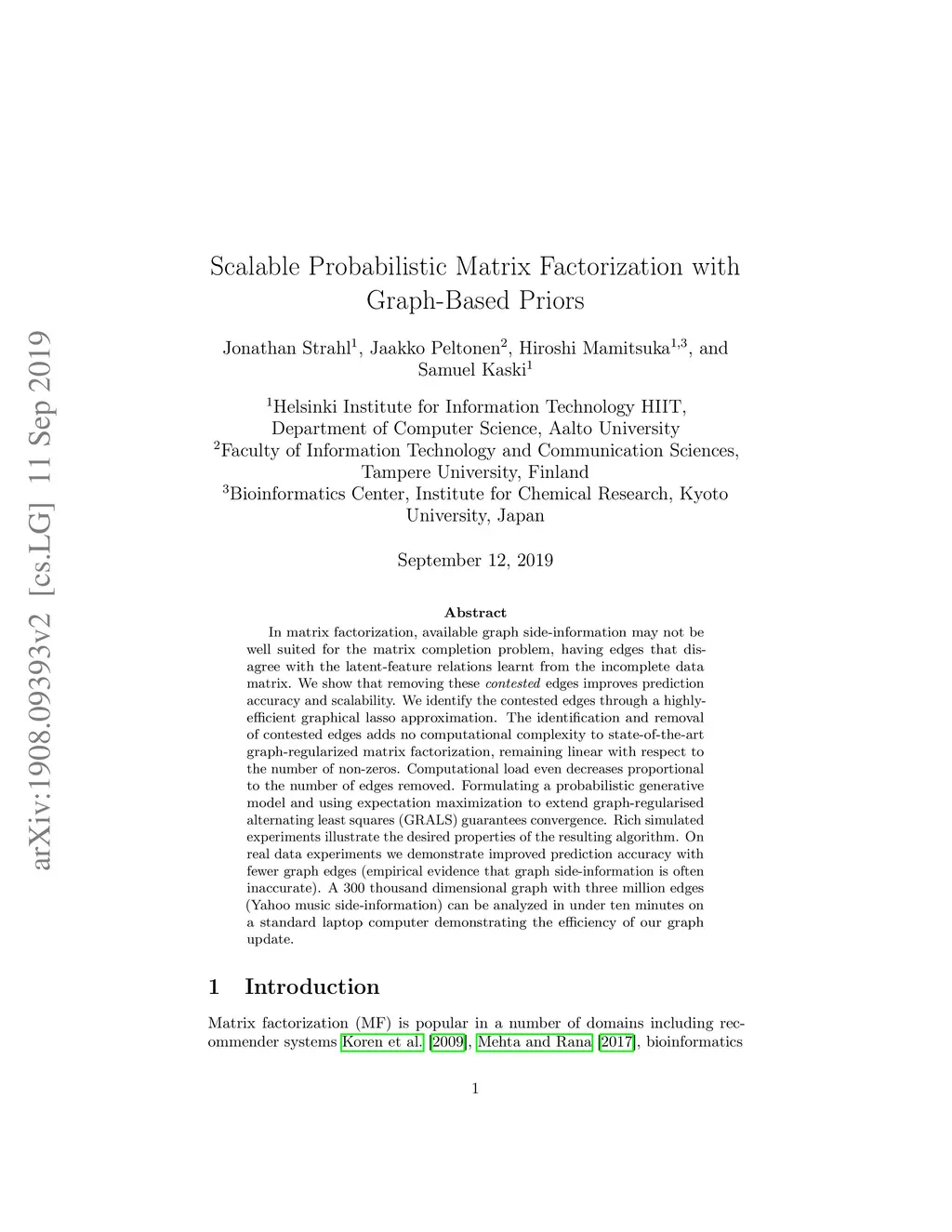 Scalable Probabilistic Matrix Factorization with Graph-Based Priors