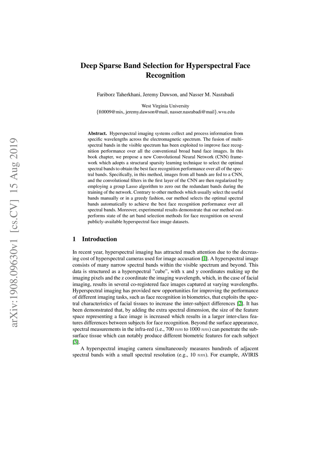 Deep Sparse Band Selection for Hyperspectral Face Recognition