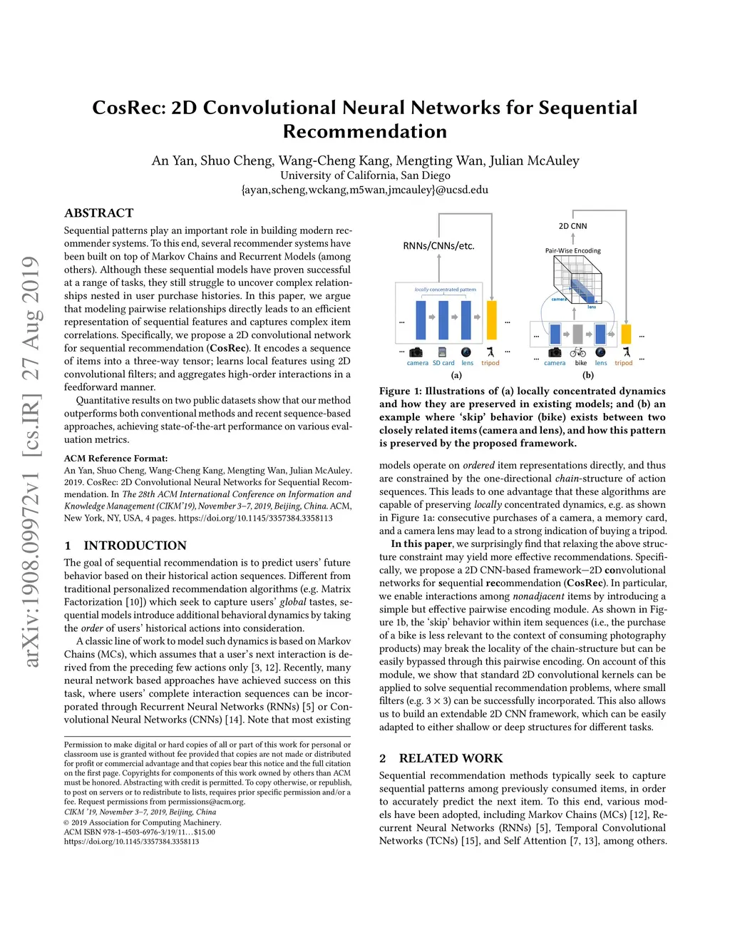 CosRec: 2D Convolutional Neural Networks for Sequential Recommendation