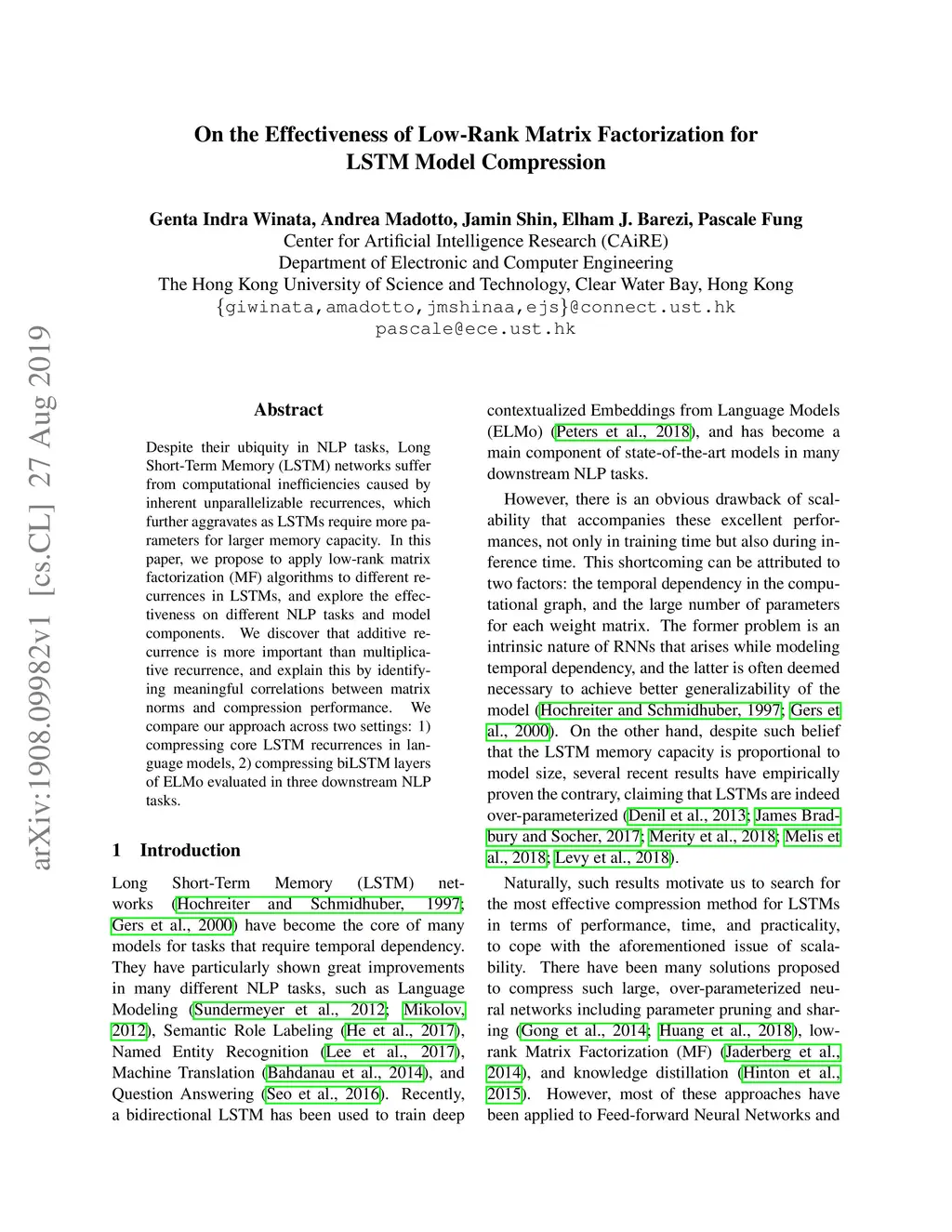 On the Effectiveness of Low-Rank Matrix Factorization for LSTM Model