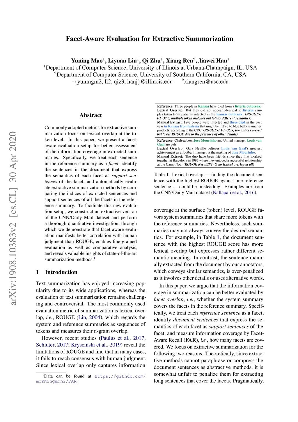 Commonly adopted metrics for extractive summarization focus on lexical overlap at the token level. In this paper, we present a facet-aware evaluation setup for better assessment of the information coverage in extracted summaries. Specifically, we treat each sentence in the reference summary as a \textit{facet}, identify the sentences in the document that express the semantics of each facet as \textit{support sentences} of the facet, and automatically evaluate extractive summarization methods by comparing the indices of extracted sentences and support sentences of all the facets in the reference summary. To facilitate this new evaluation setup, we construct an extractive version of the CNN/Daily Mail dataset and perform a thorough quantitative investigation, through which we demonstrate that facet-aware evaluation manifests better correlation with human judgment than ROUGE, enables fine-grained evaluation as well as comparative analysis, and reveals valuable insights of state-of-the-art summarization methods. Data can be found at https://github.com/morningmoni/FAR.