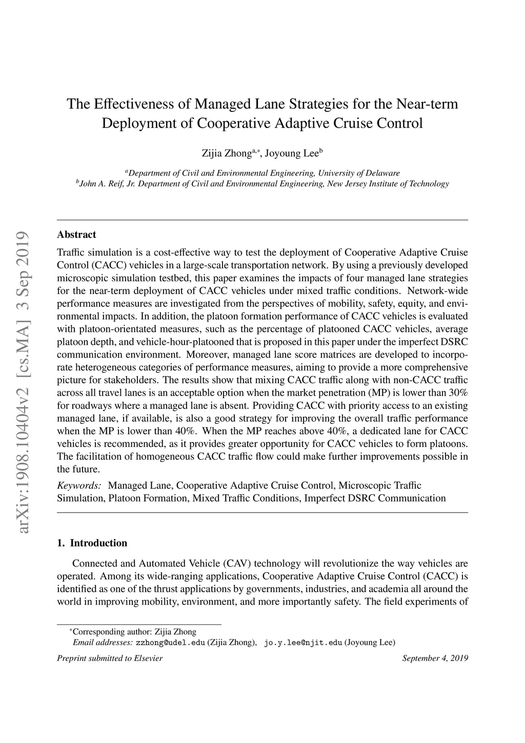 Traffic simulation is a cost-effective way to test the deployment of Cooperative Adaptive Cruise Control (CACC) vehicles in a large-scale transportation network. By using a previously developed microscopic simulation testbed, this paper examines the impacts of four managed lane strategies for the near-term deployment of CACC vehicles under mixed traffic conditions. Network-wide performance measures are investigated from the perspectives of mobility, safety, equity, and environmental impacts. In addition, the platoon formation performance of CACC vehicles is evaluated with platoon-orientated measures, such as the percentage of platooned CACC vehicles, average platoon depth, and vehicle-hour-platooned that is proposed in this paper under the imperfect DSRC communication environment. Moreover, managed lane score matrices are developed to incorporate heterogeneous categories of performance measures, aiming to provide a more comprehensive picture for stakeholders. The results show that mixing CACC traffic along with non-CACC traffic across all travel lanes is an acceptable option when the market penetration (MP) is lower than 30% for roadways where a managed lane is absent. Providing CACC with priority access to an existing managed lane, if available, is also a good strategy for improving the overall traffic performance when the MP is lower than 40%. When the MP reaches above 40%, a dedicated lane for CACC vehicles is recommended, as it provides greater opportunity for CACC vehicles to form platoons. The facilitation of homogeneous CACC traffic flow could make further improvements possible in the future.