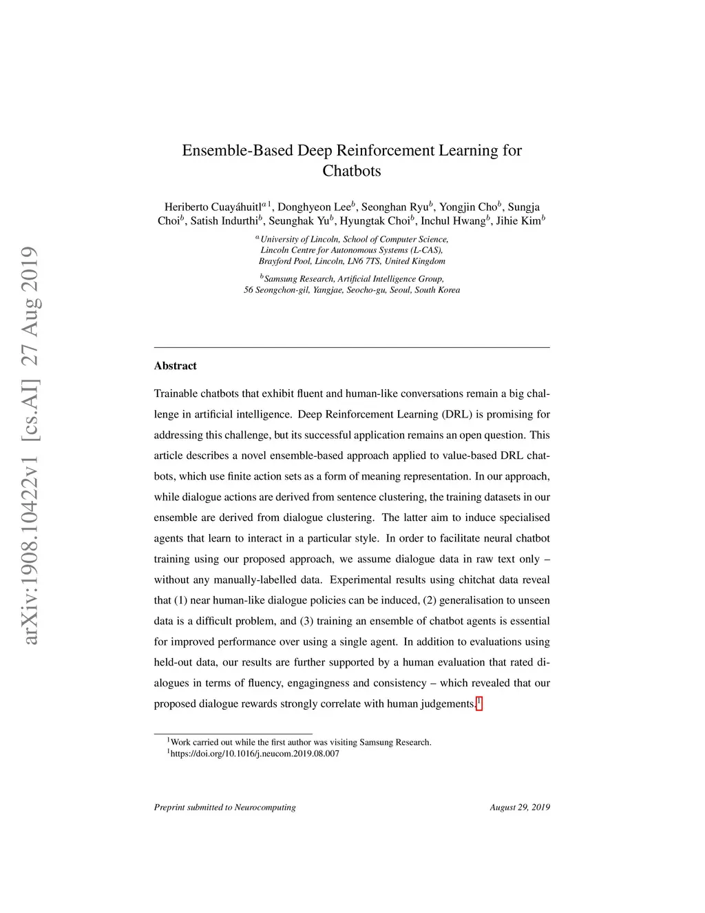 Ensemble-Based Deep Reinforcement Learning for Chatbots