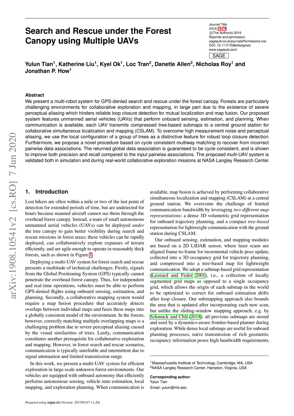 We present a multi-robot system for GPS-denied search and rescue under the forest canopy. Forests are particularly challenging environments for collaborative exploration and mapping, in large part due to the existence of severe perceptual aliasing which hinders reliable loop closure detection for mutual localization and map fusion. Our proposed system features unmanned aerial vehicles (UAVs) that perform onboard sensing, estimation, and planning. When communication is available, each UAV transmits compressed tree-based submaps to a central ground station for collaborative simultaneous localization and mapping (CSLAM). To overcome high measurement noise and perceptual aliasing, we use the local configuration of a group of trees as a distinctive feature for robust loop closure detection. Furthermore, we propose a novel procedure based on cycle consistent multiway matching to recover from incorrect pairwise data associations. The returned global data association is guaranteed to be cycle consistent, and is shown to improve both precision and recall compared to the input pairwise associations. The proposed multi-UAV system is validated both in simulation and during real-world collaborative exploration missions at NASA Langley Research Center.