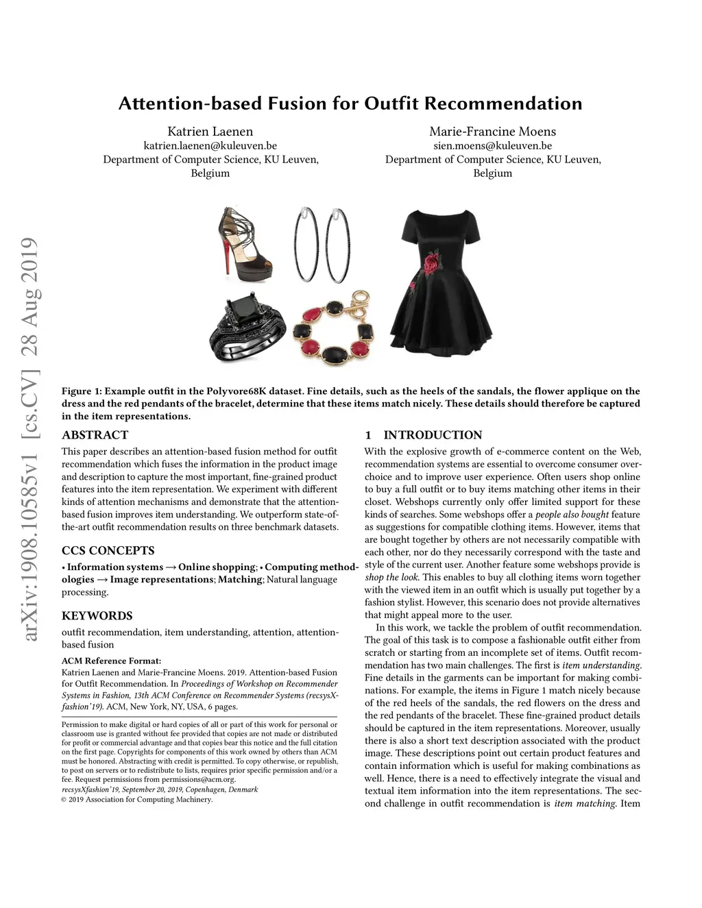 This paper describes an attention-based fusion method for outfit recommendation which fuses the information in the product image and description to capture the most important, fine-grained product features into the item representation. We experiment with different kinds of attention mechanisms and demonstrate that the attention-based fusion improves item understanding. We outperform state-of-the-art outfit recommendation results on three benchmark datasets.