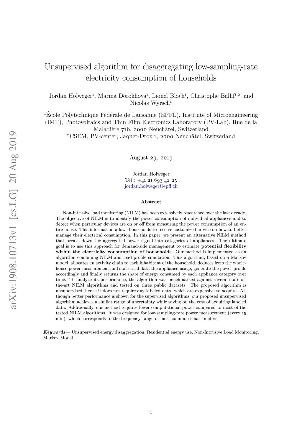 Unsupervised algorithm for disaggregating low-sampling-rate electricity