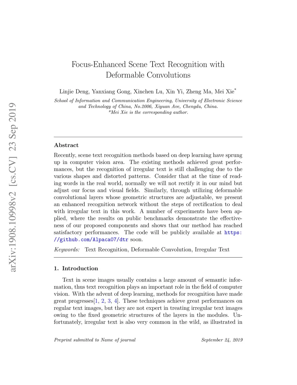 Focus-Enhanced Scene Text Recognition with Deformable Convolutions