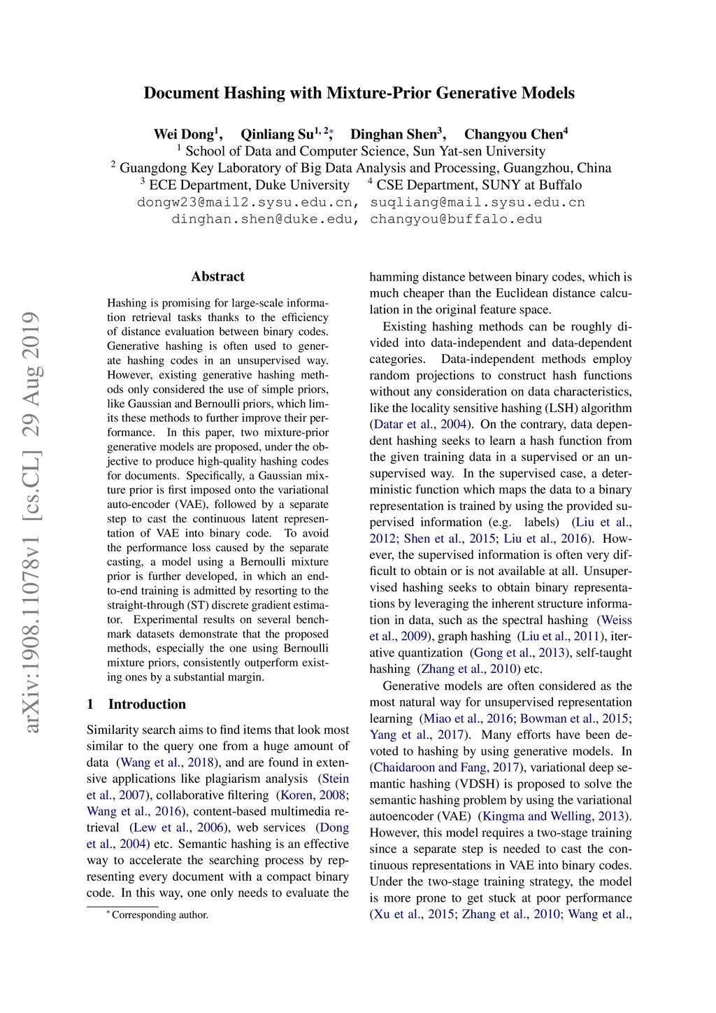Hashing is promising for large-scale information retrieval tasks thanks to the efficiency of distance evaluation between binary codes. Generative hashing is often used to generate hashing codes in an unsupervised way. However, existing generative hashing methods only considered the use of simple priors, like Gaussian and Bernoulli priors, which limits these methods to further improve their performance. In this paper, two mixture-prior generative models are proposed, under the objective to produce high-quality hashing codes for documents. Specifically, a Gaussian mixture prior is first imposed onto the variational auto-encoder (VAE), followed by a separate step to cast the continuous latent representation of VAE into binary code. To avoid the performance loss caused by the separate casting, a model using a Bernoulli mixture prior is further developed, in which an end-to-end training is admitted by resorting to the straight-through (ST) discrete gradient estimator. Experimental results on several benchmark datasets demonstrate that the proposed methods, especially the one using Bernoulli mixture priors, consistently outperform existing ones by a substantial margin.