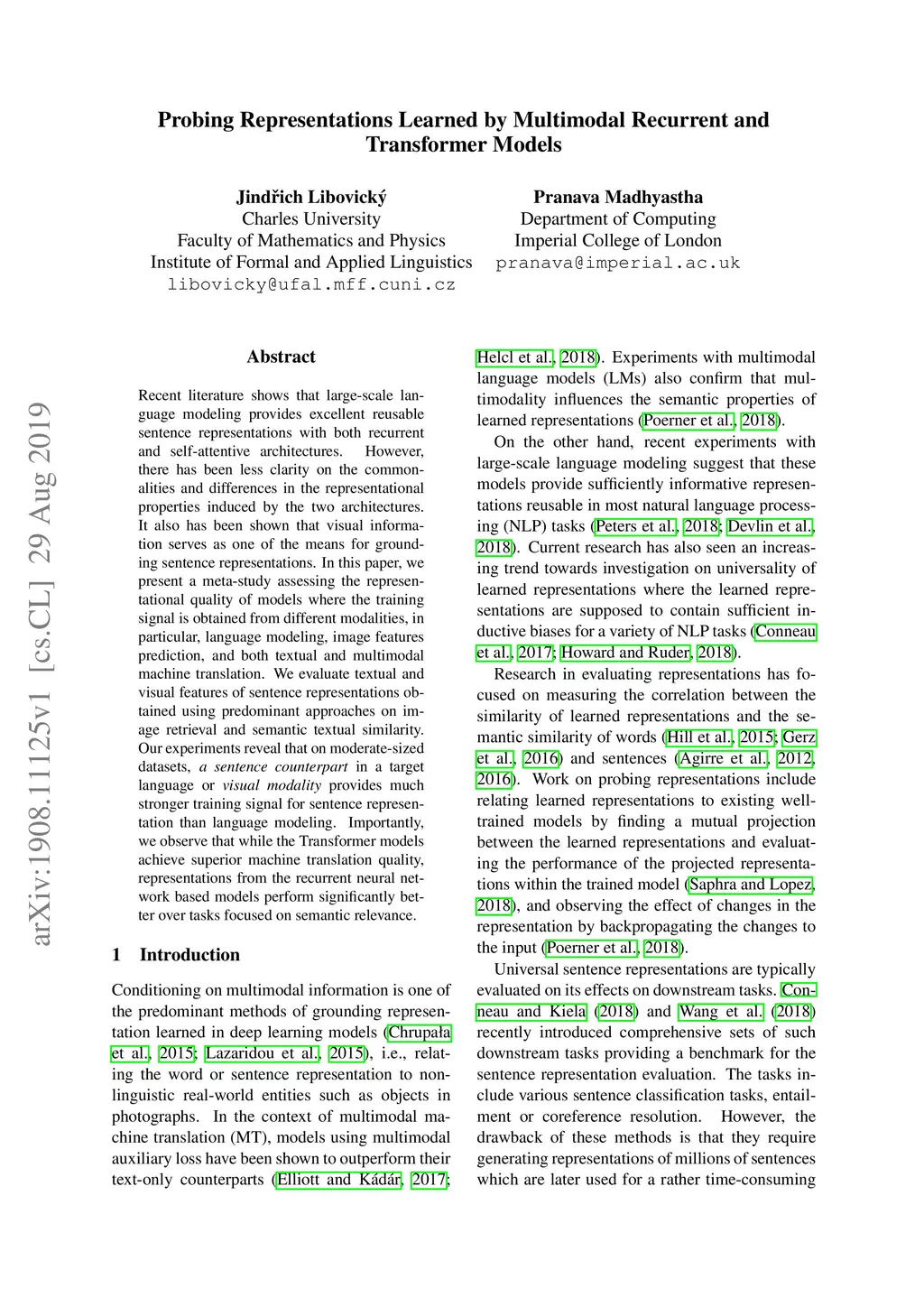 Probing Representations Learned by Multimodal Recurrent and Transformer