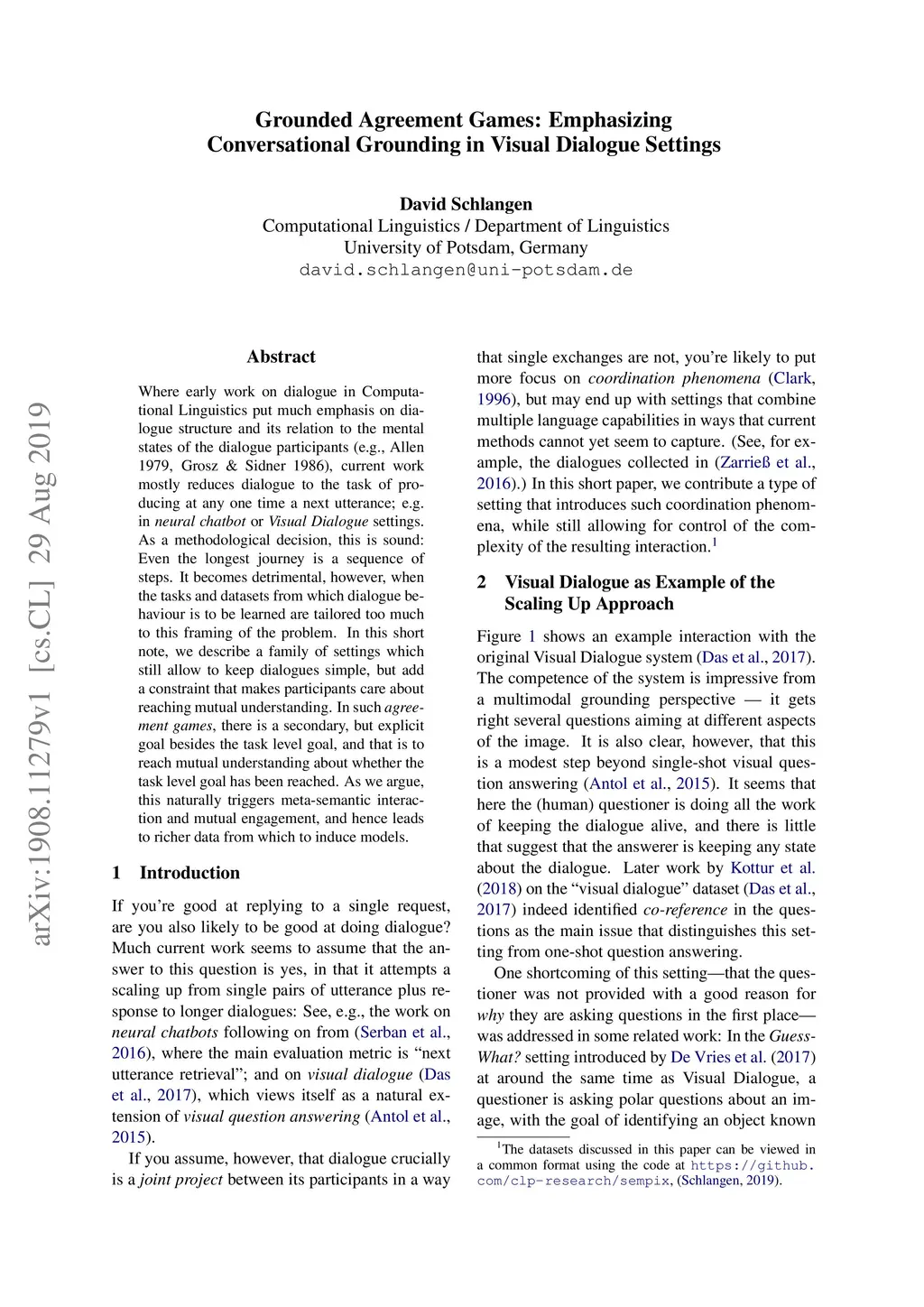 Grounded Agreement Games: Emphasizing Conversational Grounding in Visual