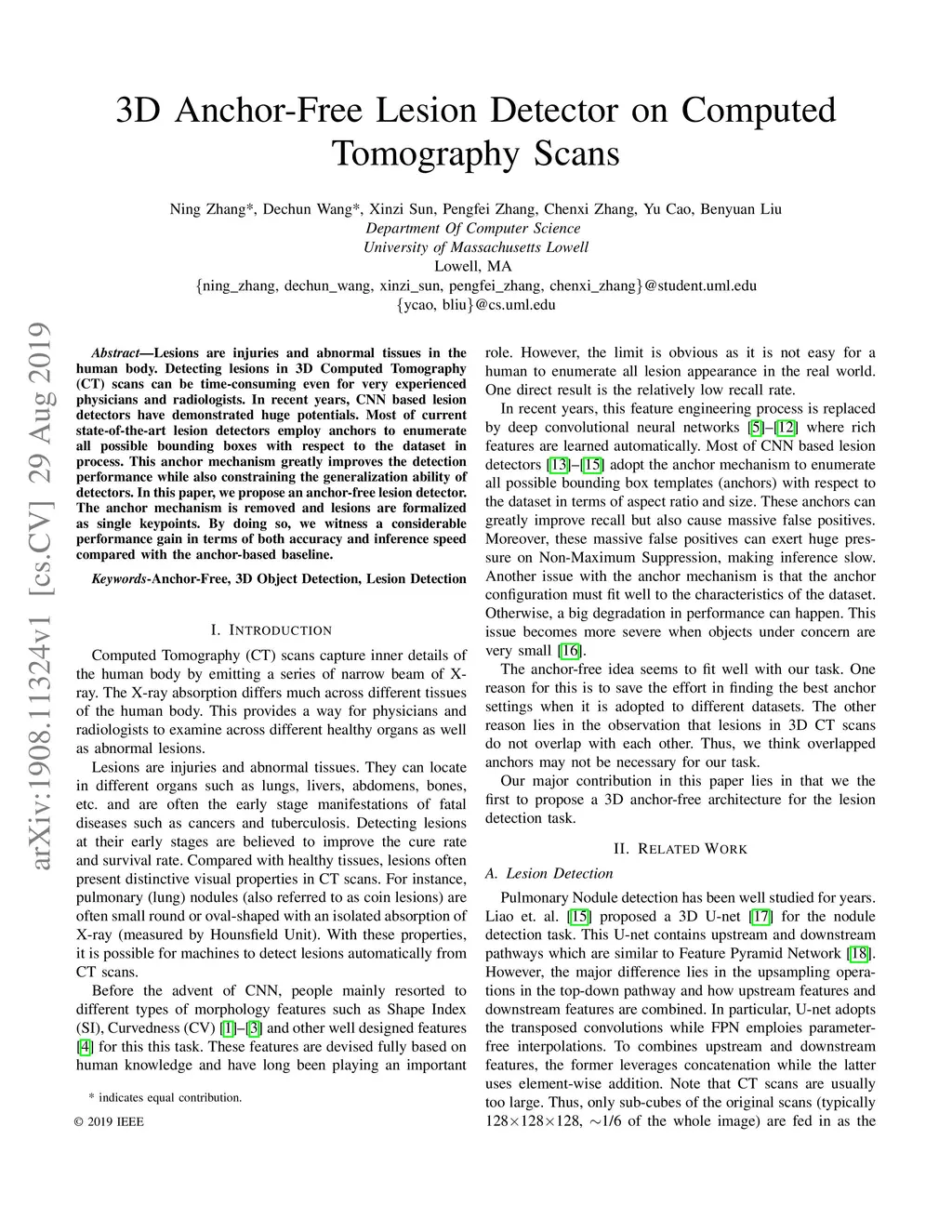 3D Anchor-Free Lesion Detector on Computed Tomography Scans
