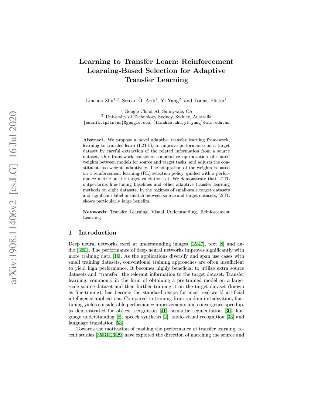 Learning to Transfer Learn: Reinforcement Learning-Based Selection for