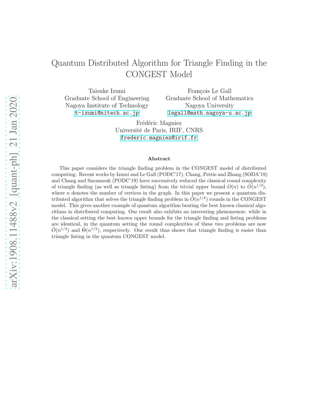 Quantum Distributed Algorithm for Triangle Finding in the CONGEST Model