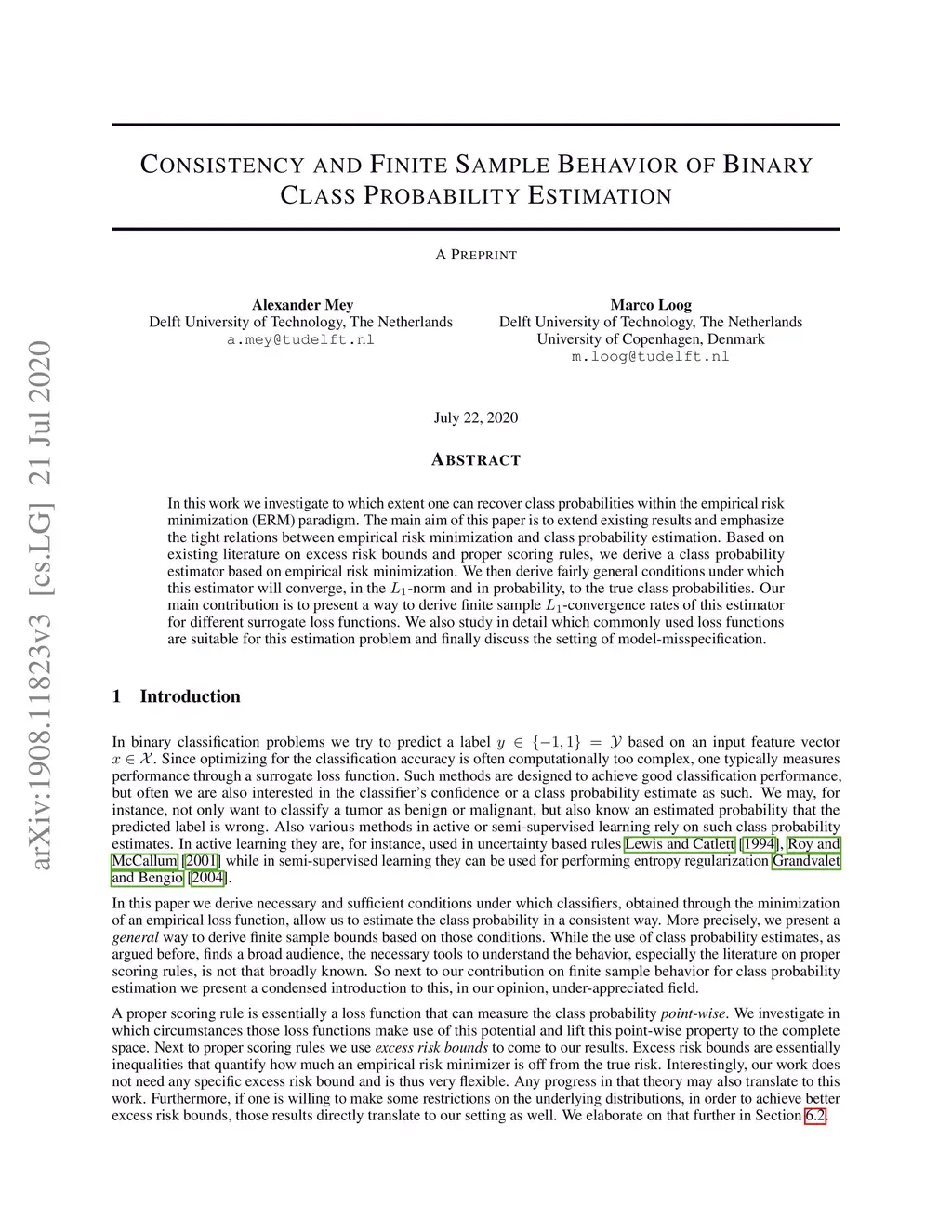 Consistency and Finite Sample Behavior of Binary Class Probability